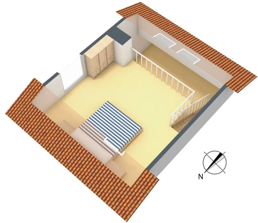 Ca. 2013 wurden im Schlafbereich neue Kunststoff-Dachflächenfenster mit Innen-Rollos eingebaut.