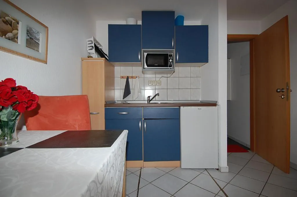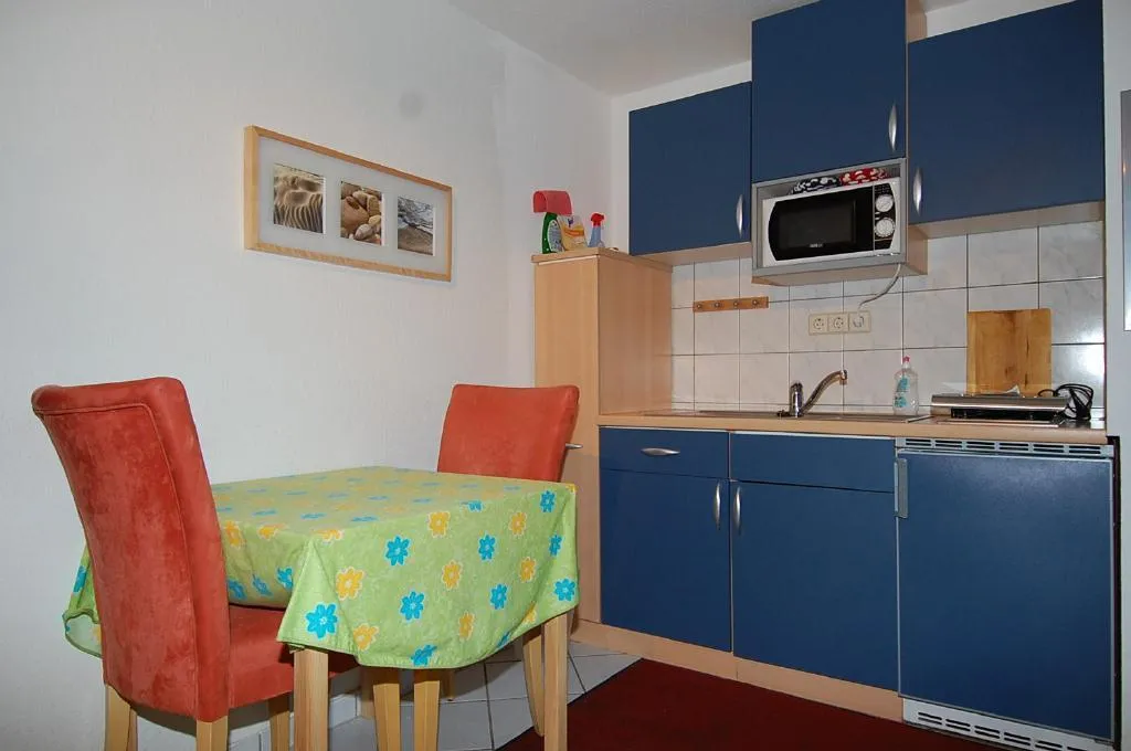 In der Möblierung sind enthalten: Bett, Kleiderschrank, Nachttisch, Bettwäsche, Kopfkissen, Schreibtisch, Wohnzimmerschrank, Fernseher, Video, Küchenzeile mit Zubehör und Besteck, Geschirr, Töpfe, Waschmaschine und Trockner.