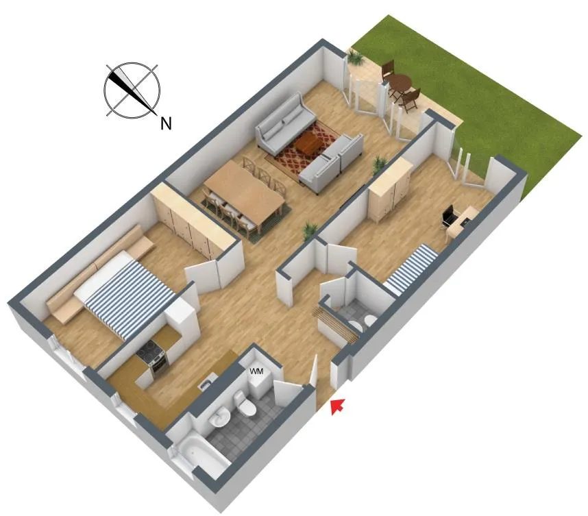 Der ca. 70 m² große Garten ist von der Terrasse und vom Kinderzimmer zugänglich.