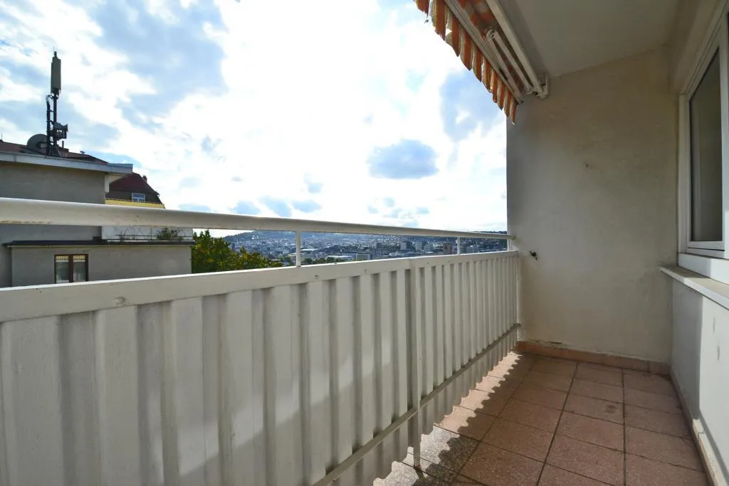Vom Wohnzimmer gibt es den Balkonzugang. Der Süd-Balkon mit Fernsicht ist ca. 4,6 m² groß, ist überdacht und ist mit einer Markise ausgestattet.