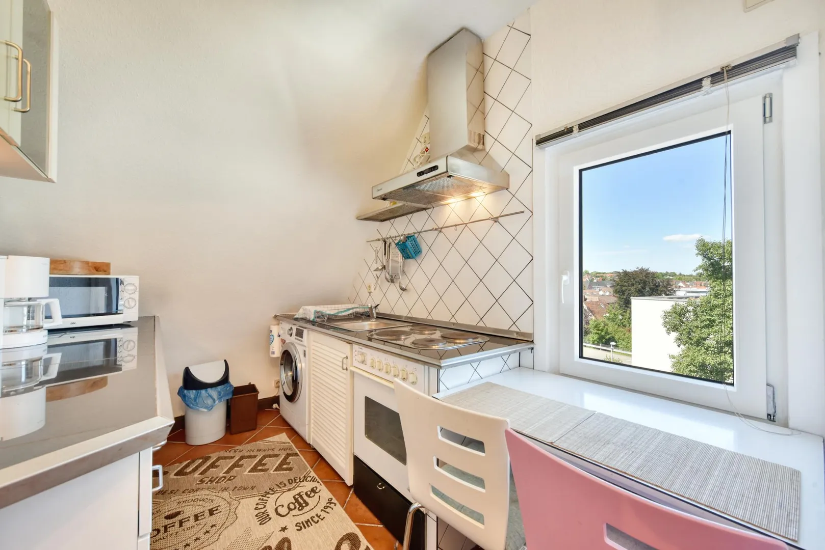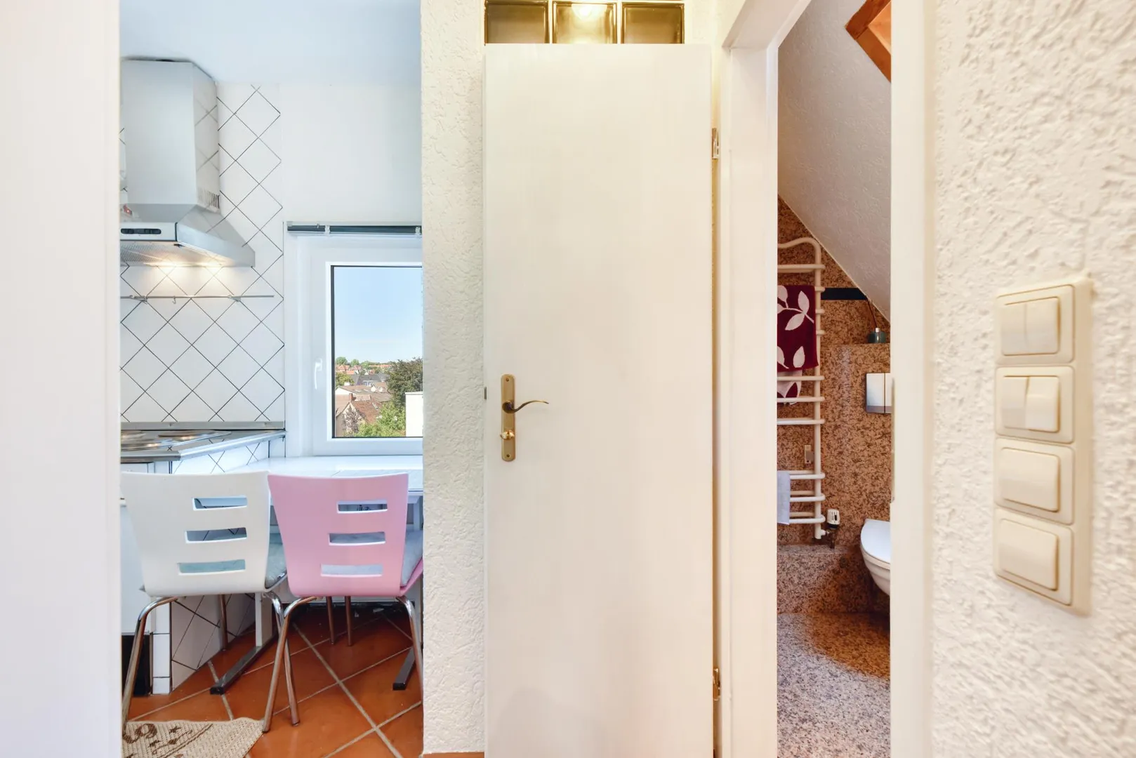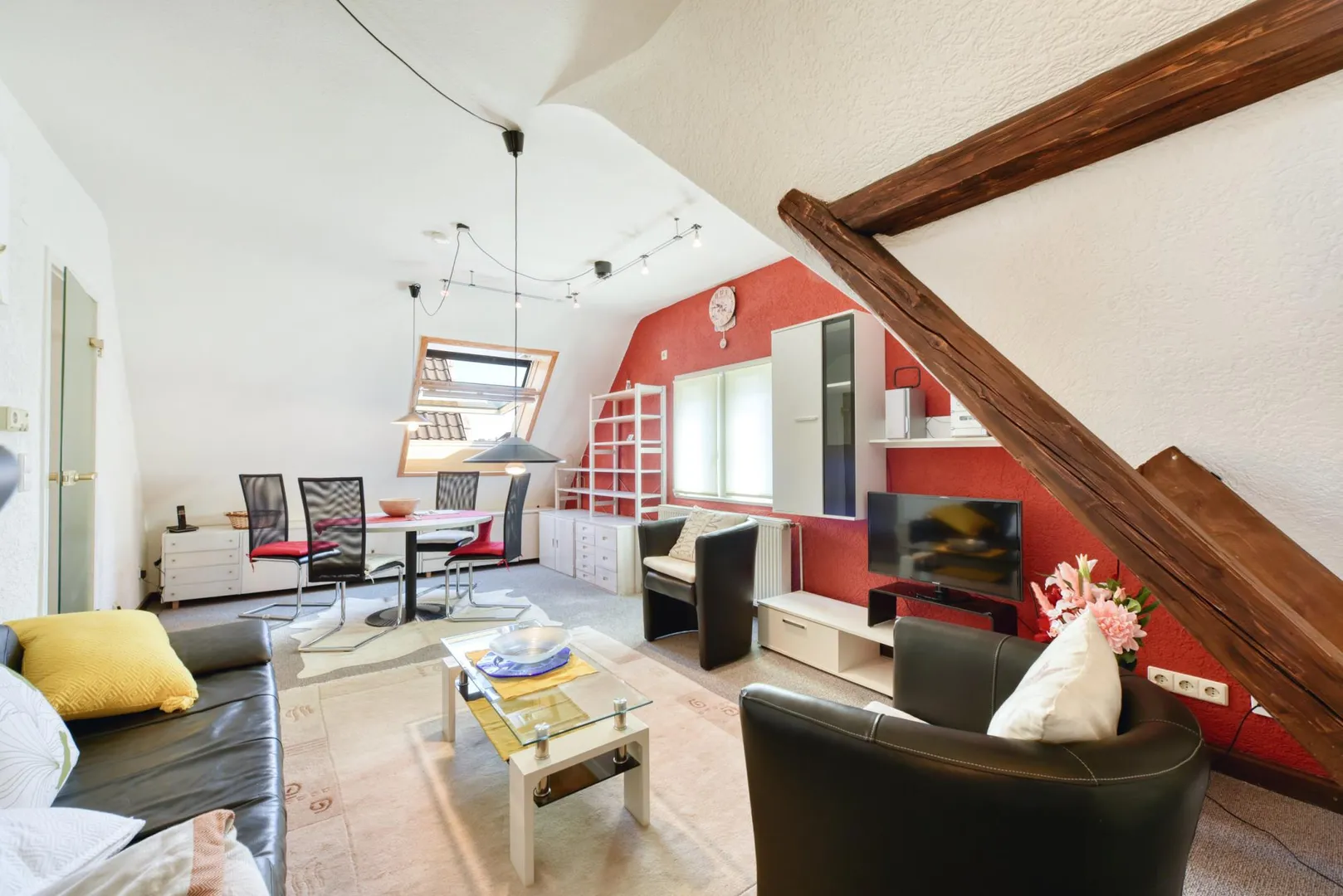 Diese möblierte, vollständig ausgestattete, gemütliche und frisch renovierte 2-Zimmer-Dachgeschoss-Etagen-Wohnung befindet sich im 3. Obergeschoss.