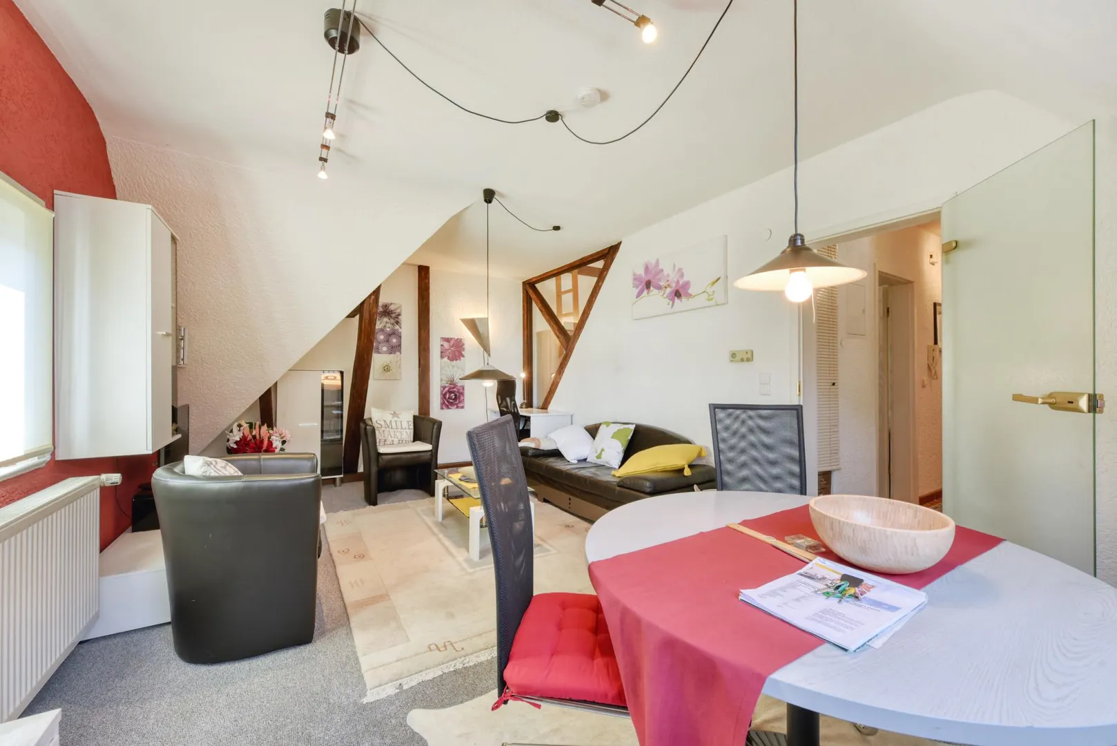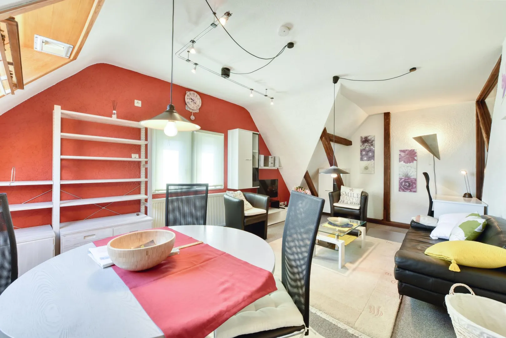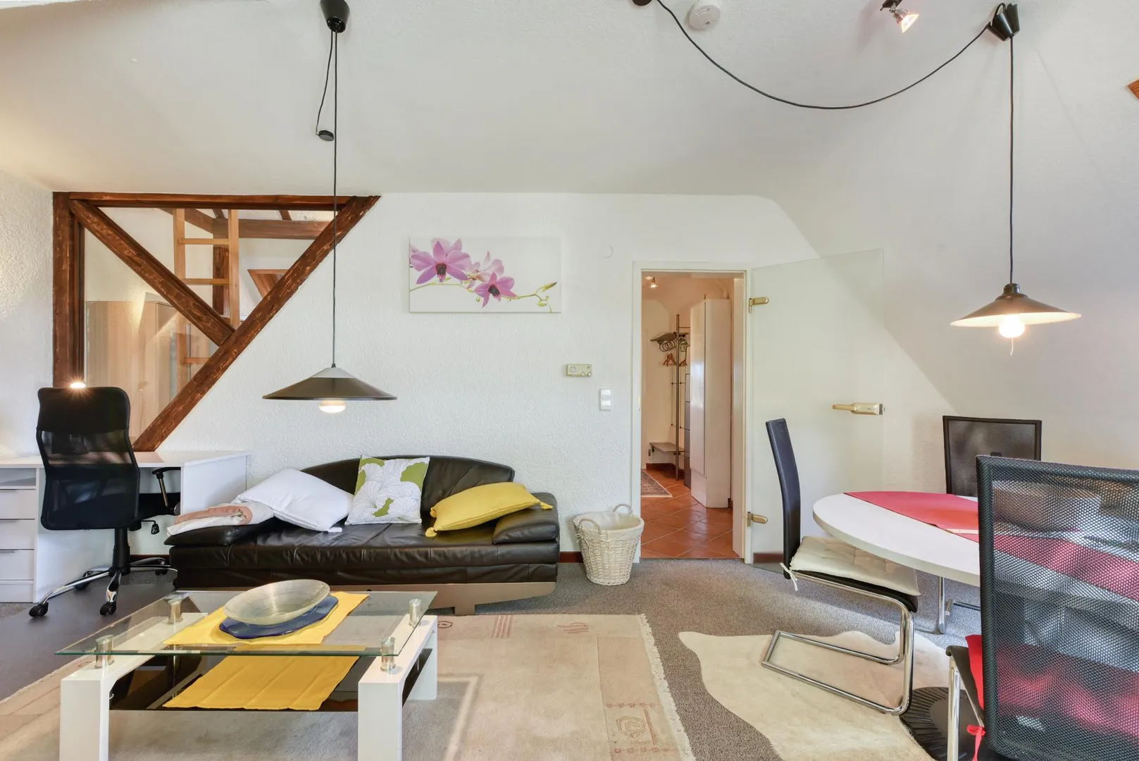 Diese möblierte, vollständig ausgestattete, gemütliche und frisch renovierte 2-Zimmer-Dachgeschoss-Etagen-Wohnung befindet sich im 3. Obergeschoss.