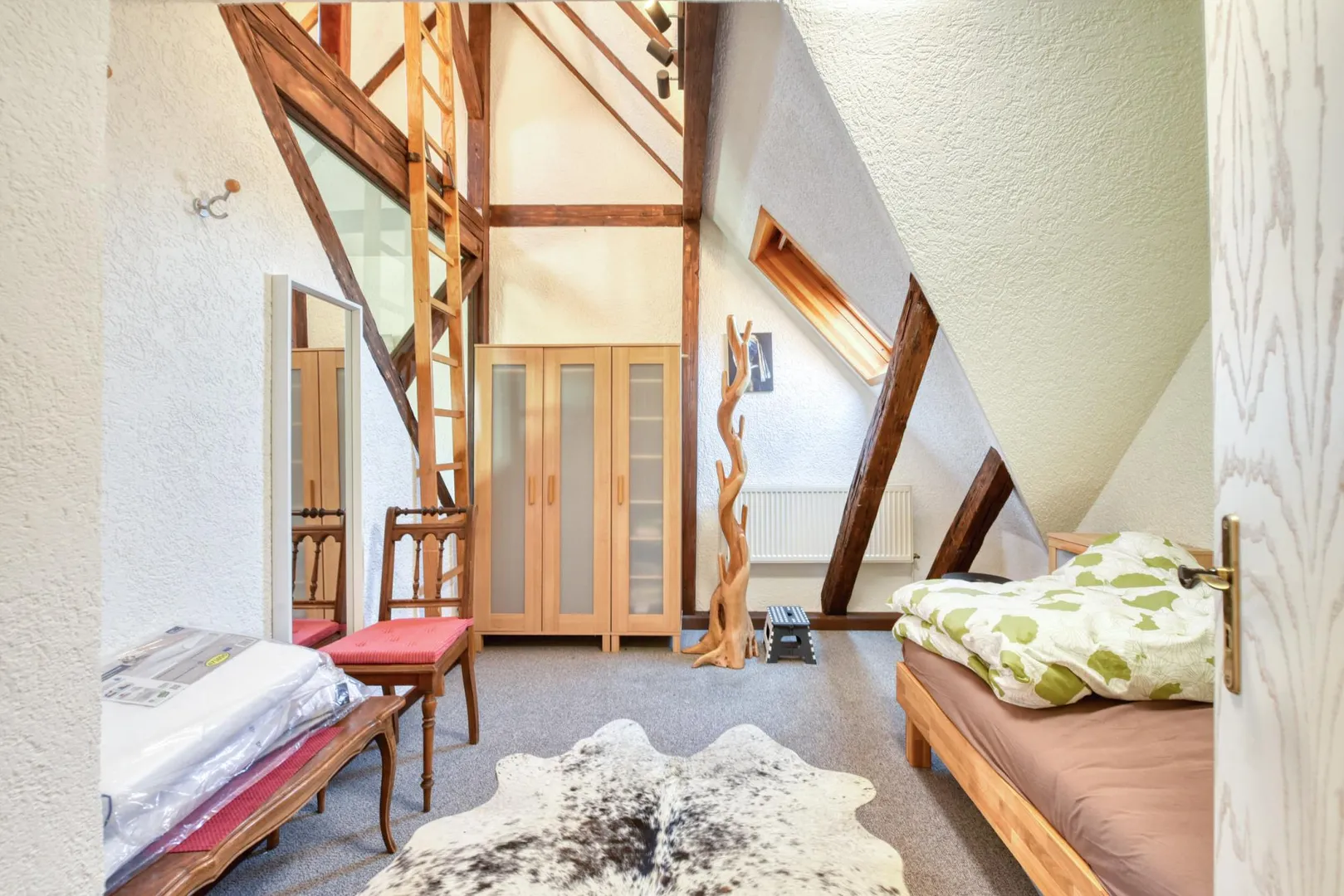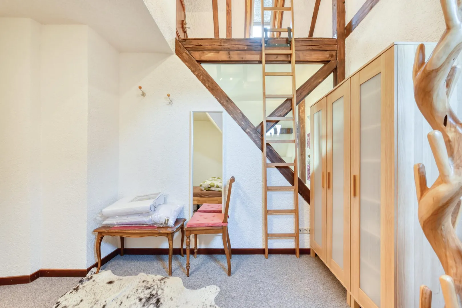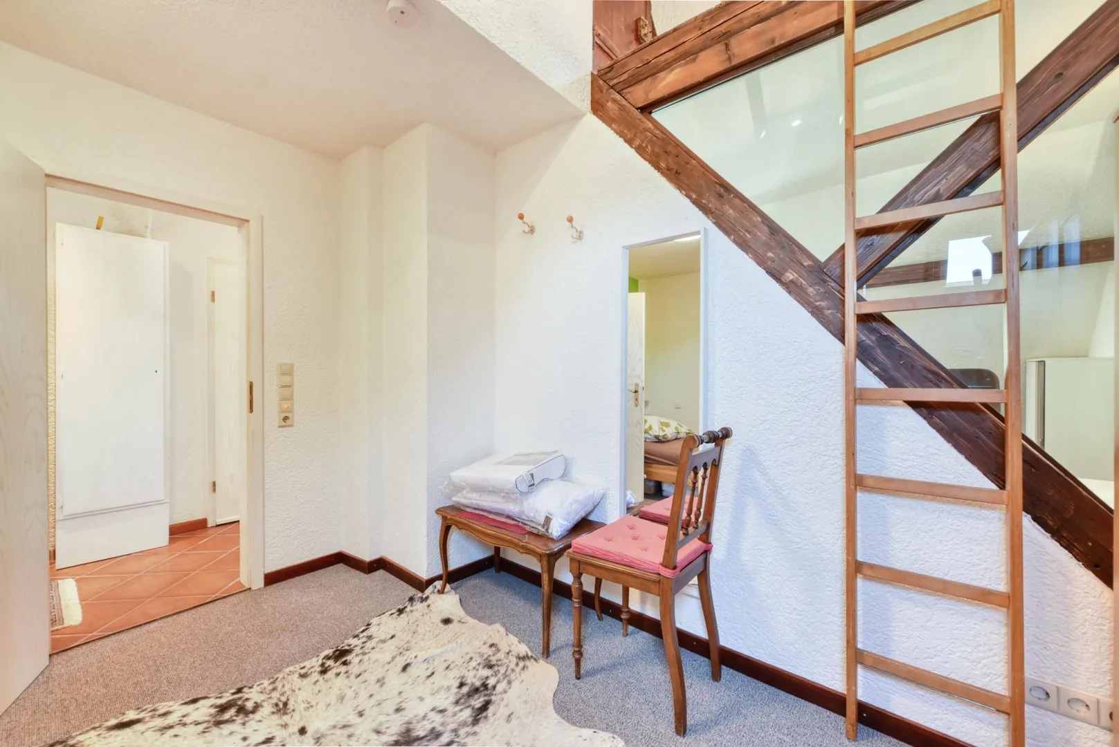 In der Wohnung gibt es eine Abstellfläche auf der Bühne, welche über eine Leiter innerhalb der Wohnung begehbar ist.