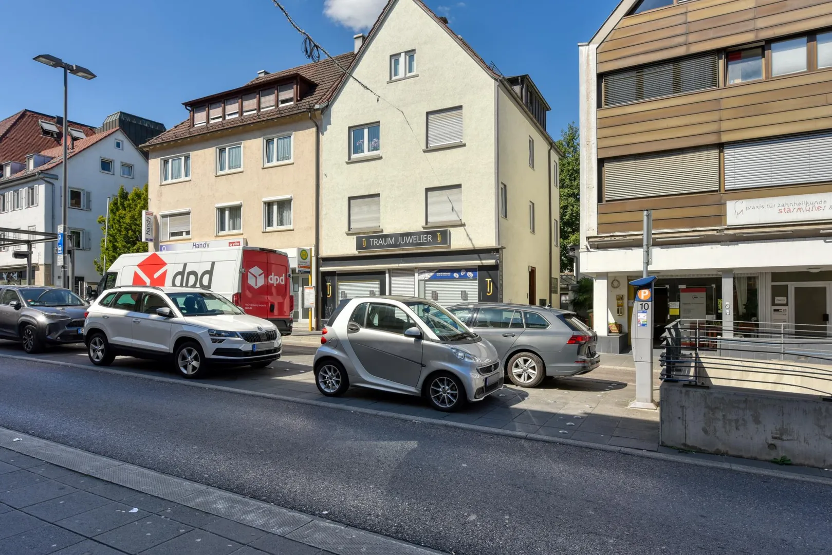 In dem freistehenden Haus befinden sich 3 Wohneinheiten sowie ein Juweliergeschäft im Erdgeschoss.