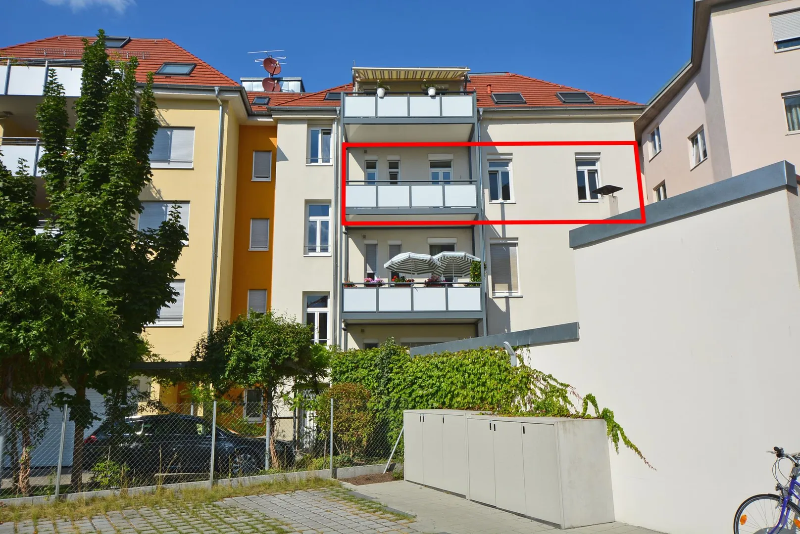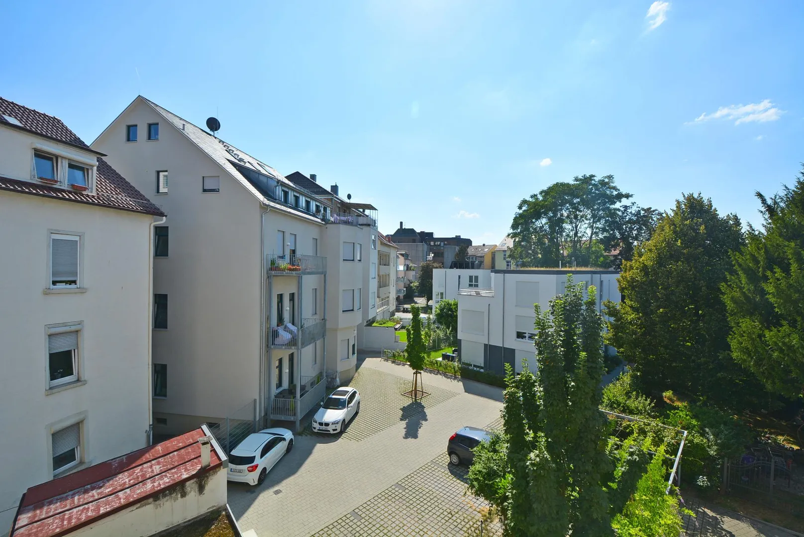 Zur Wohnung gehören ein Kfz-Außenstellplatz im Innenhof sowie ein Abstellraum im Gewölbekeller.