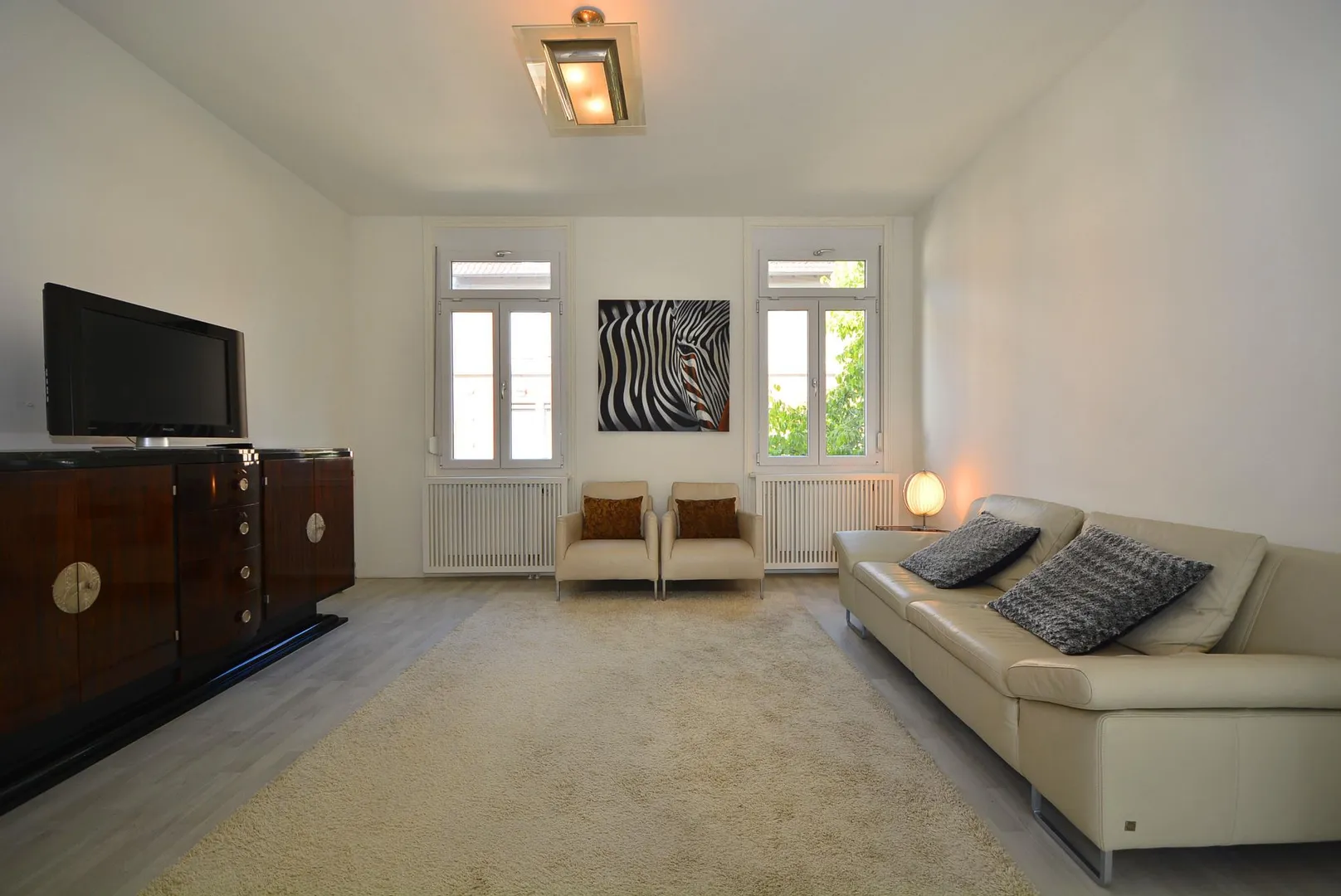 Diese möblierte, hochwertig modernisierte und bequeme 3 1/2 Zimmer-Etagen-Wohnung befindet sich im 2. OG einer 4-Familien-Doppelhaushälfte mit Aufzug.
