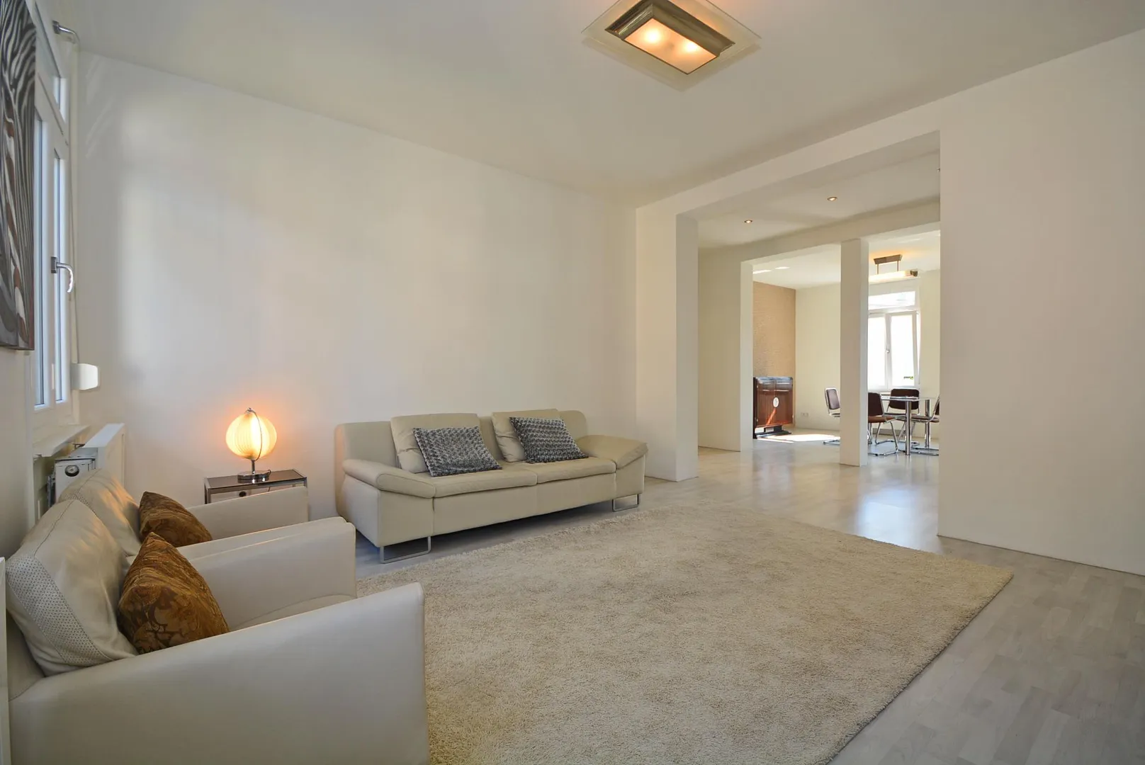 Die Wohnung wurde hochwertig ca. 2007/2008 modernisiert. Die Böden wurden überwiegend mit Laminat ausgestattet. Die Bäden im Bad und im WC sind gefliest. Die Wände sind verputzt.