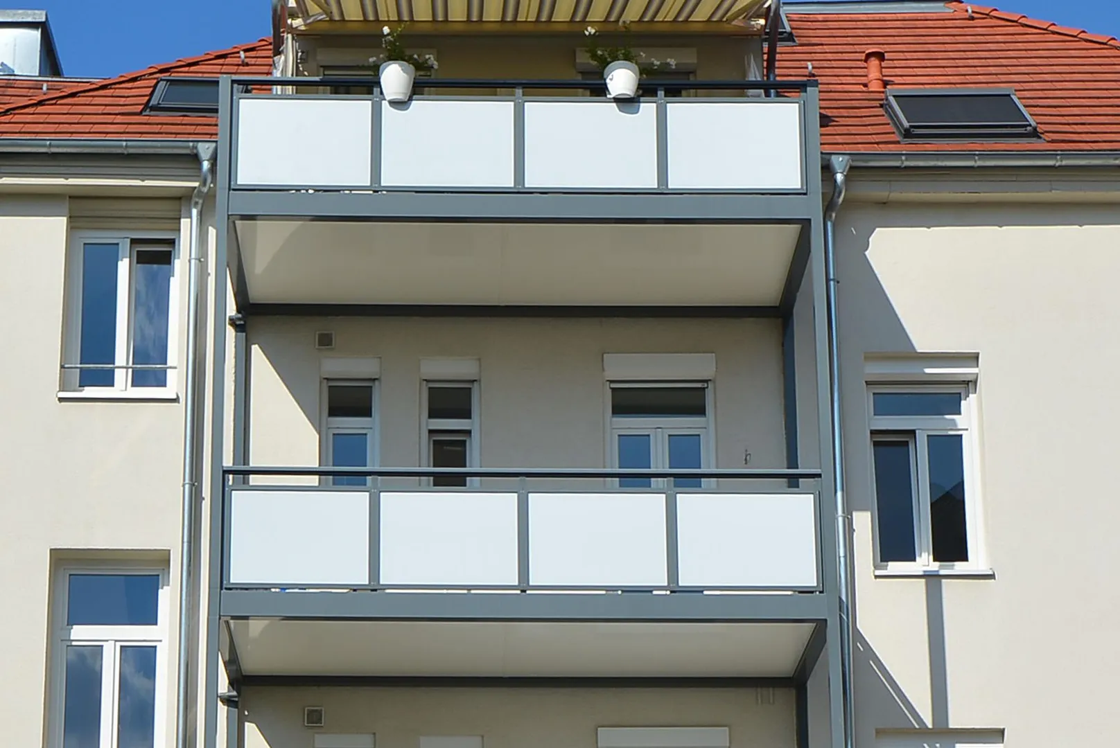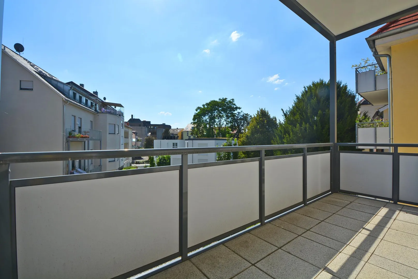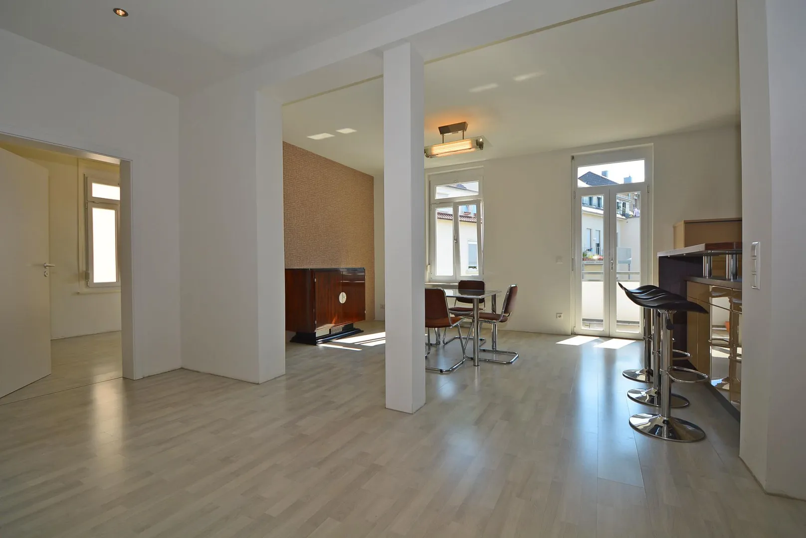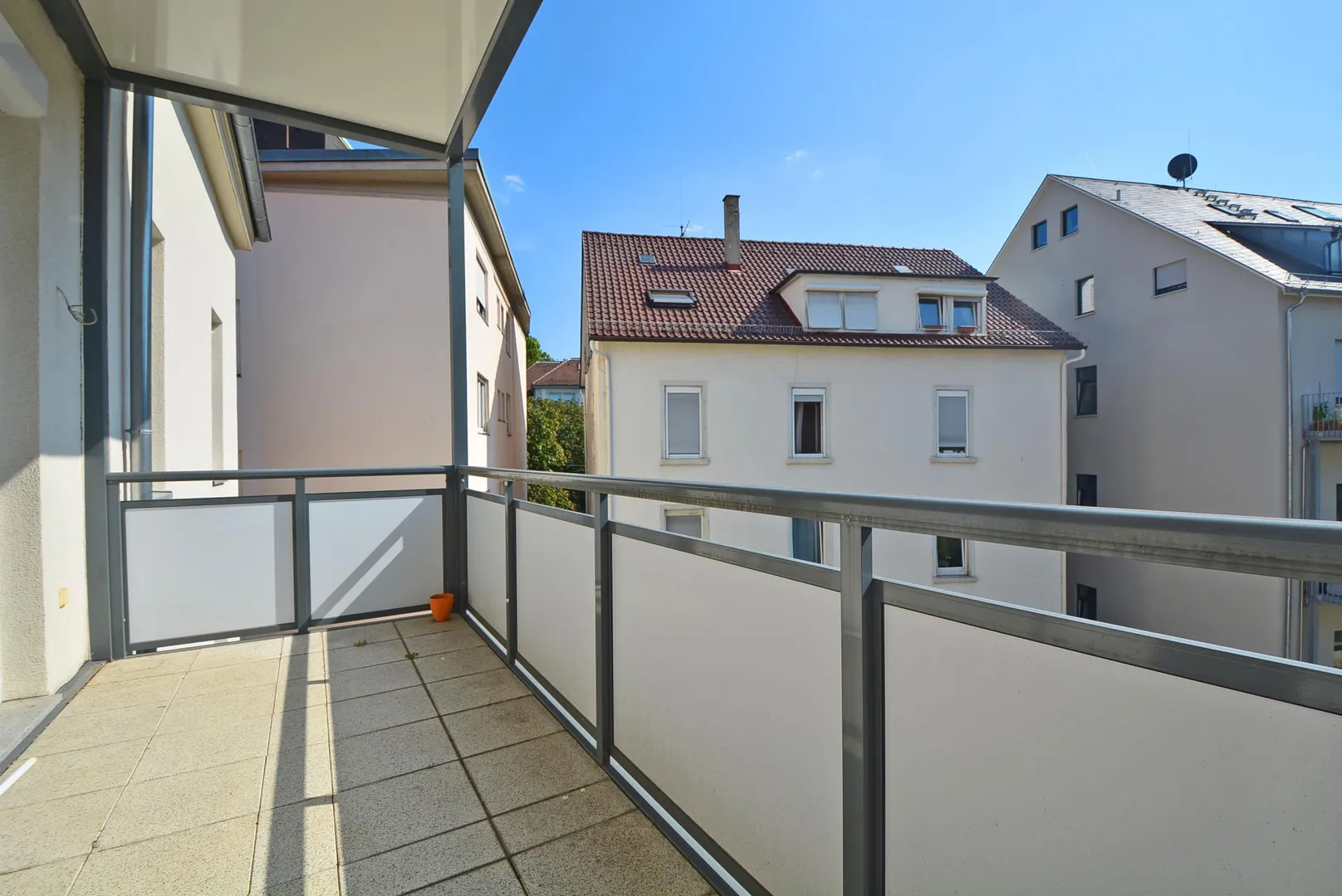 Der überdachte Süd-Balkon ist über den offenen Essbereich begehbar.