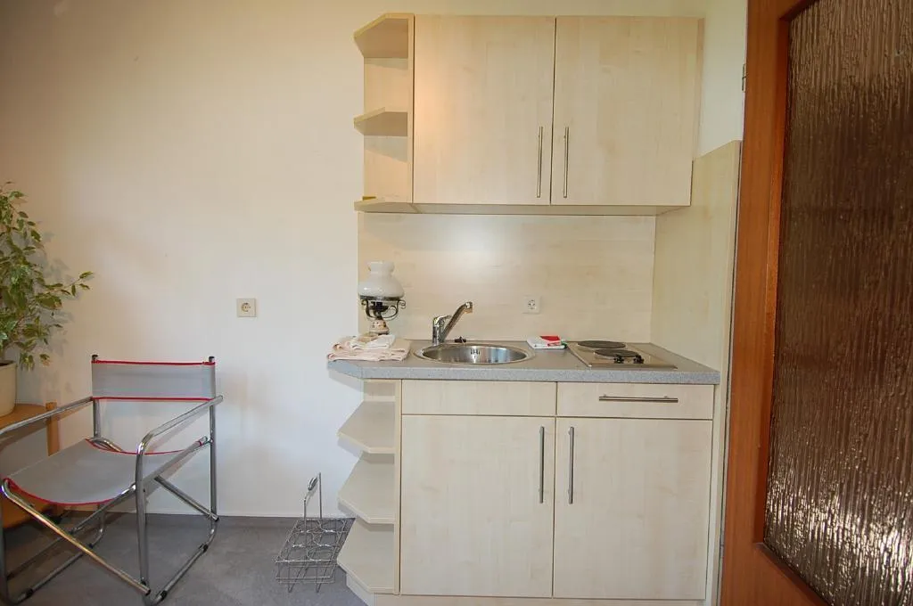Das Zimmer ist mit einem neuen Teppichboden und mit einer offenen Kochzeile ausgestattet.