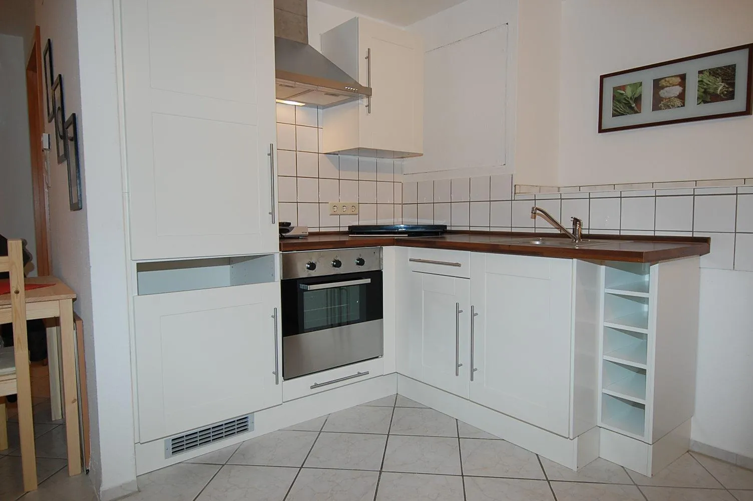 Im Wohnbereich befindet sich eine Kochecke mit einer neuen Einbauküche mit allen Elektro-Geräten außer Spülmaschine.