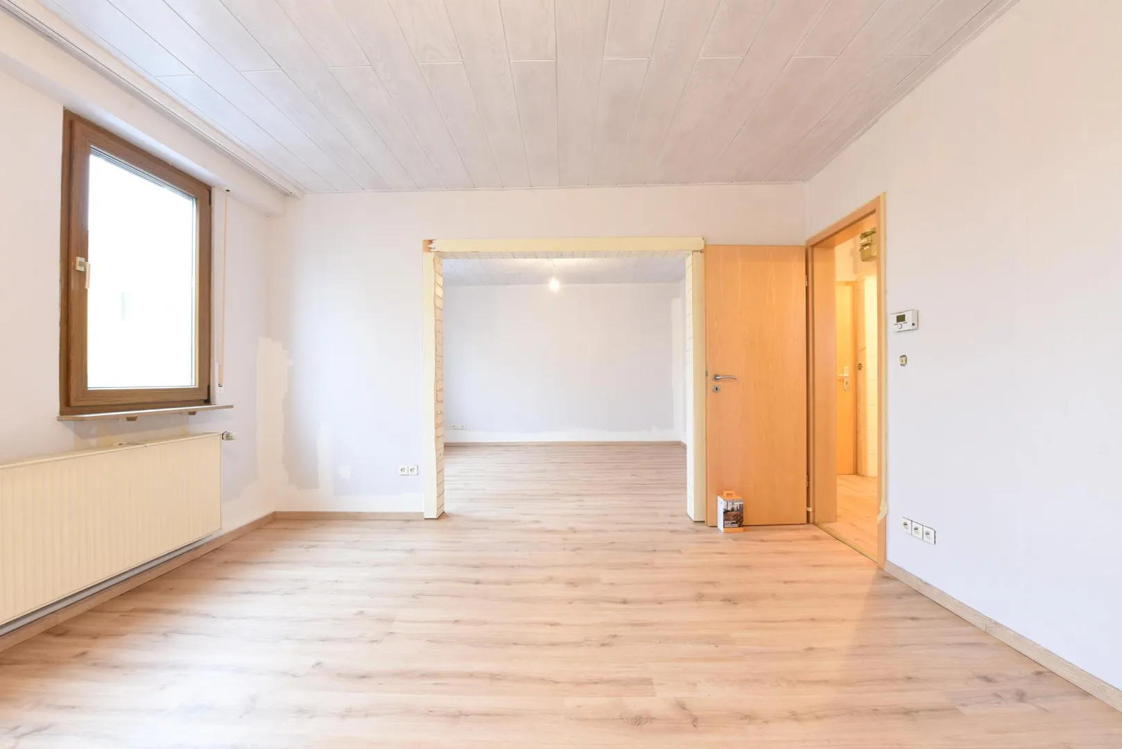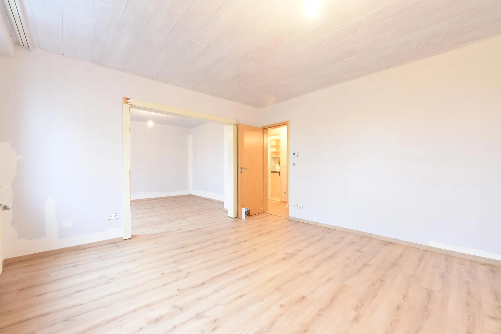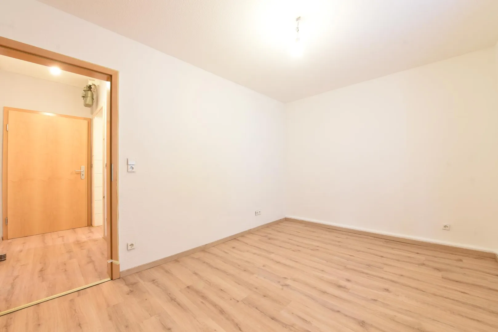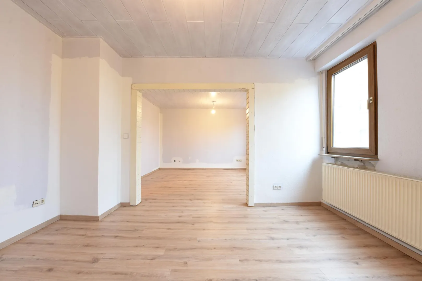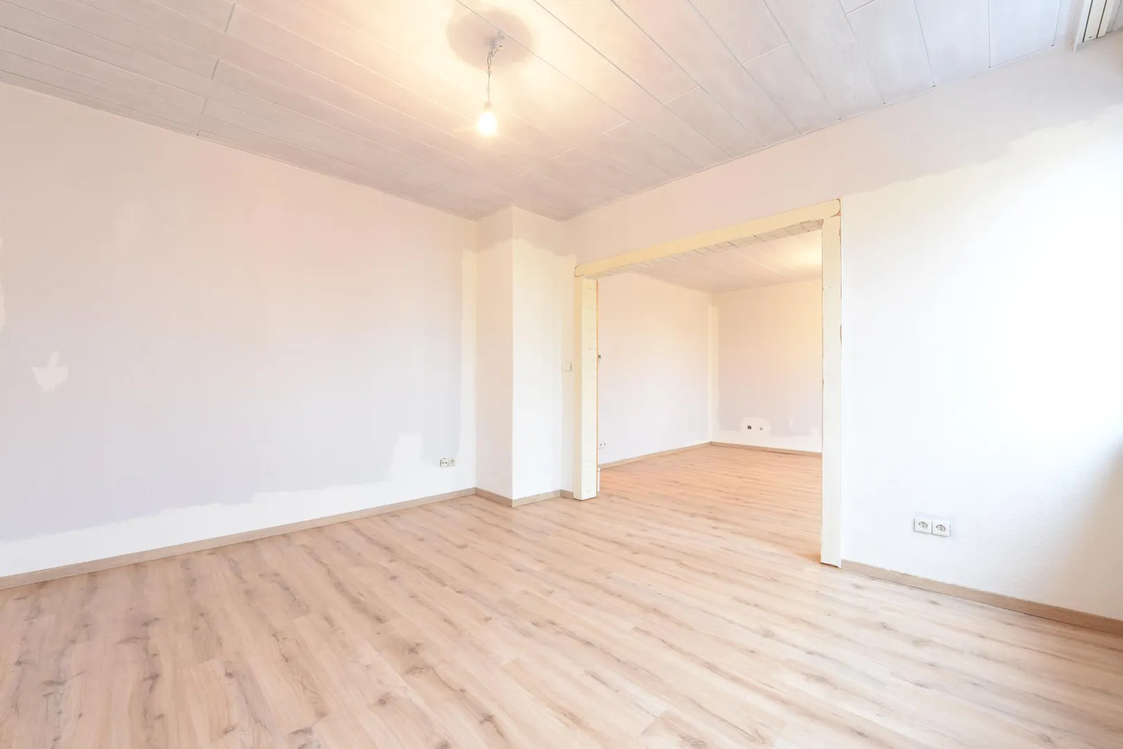 Die Wände wurden frisch mit Raufasertapete tapeziert und weiß gestrichen. Die abgehängten Decken in der Küche und im Bad sind neu.