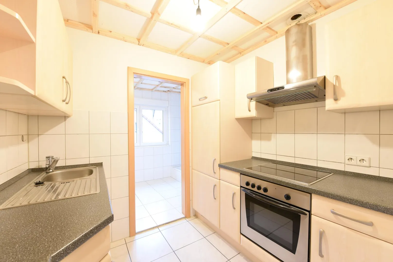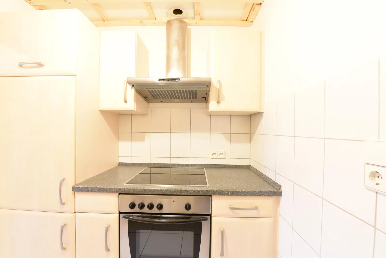 Die Einbauküche ist von 2005 und ist ausgestattet mit einem Kühlschrank, einem Gefrierschrank, einem Herd mit Backofen, einem Dunstabzug sowie mit Unter- und Oberschränken. Für die eigene Spülmaschine ist ein Platz neben der Spüle vorhanden. Die Küche ist in einem sehr guten Zustand. Die Elektrogeräte sind funktionsfähig. Für die künftige Funktionsfähigkeit der E-Geräte übernimmt der Vermieter keine Haftung.