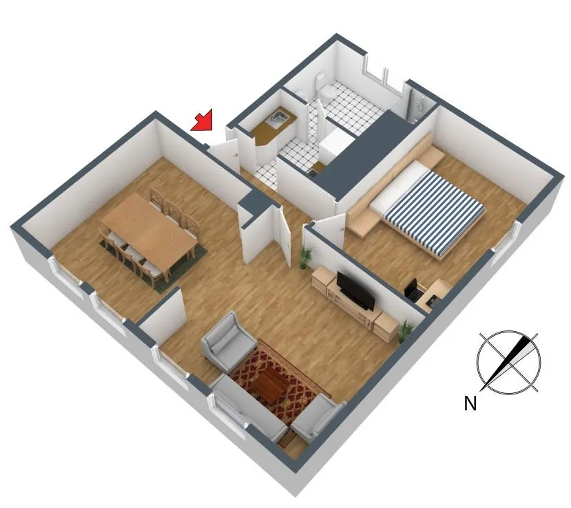 Aktuell wurden in den Zimmern und im Flur neue Vinyl-Design-Fußböden verlegt. Die Böden in der Küche und im Badezimmer sind gefliest.