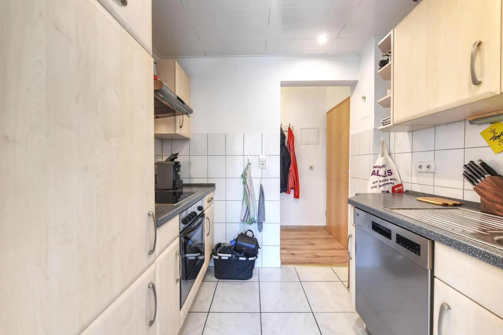 Die Einbauküche ist von 2005 und ist ausgestattet mit einem Kühlschrank, einem Gefrierschrank, einem Herd mit Backofen, einem Dunstabzug sowie mit Unter- und Oberschränken. Für die eigene Spülmaschine ist ein Platz neben der Spüle vorhanden. Die bestehende Spülmaschine gehört dem aktuellen Mieter und kann von diesem für 250 EUR (VB) übernommen werden. Die Küche ist in einem sehr guten Zustand. Die Elektrogeräte sind funktionsfähig. Für die künftige Funktionsfähigkeit der E-Geräte übernimmt der Vermieter keine Haftung.