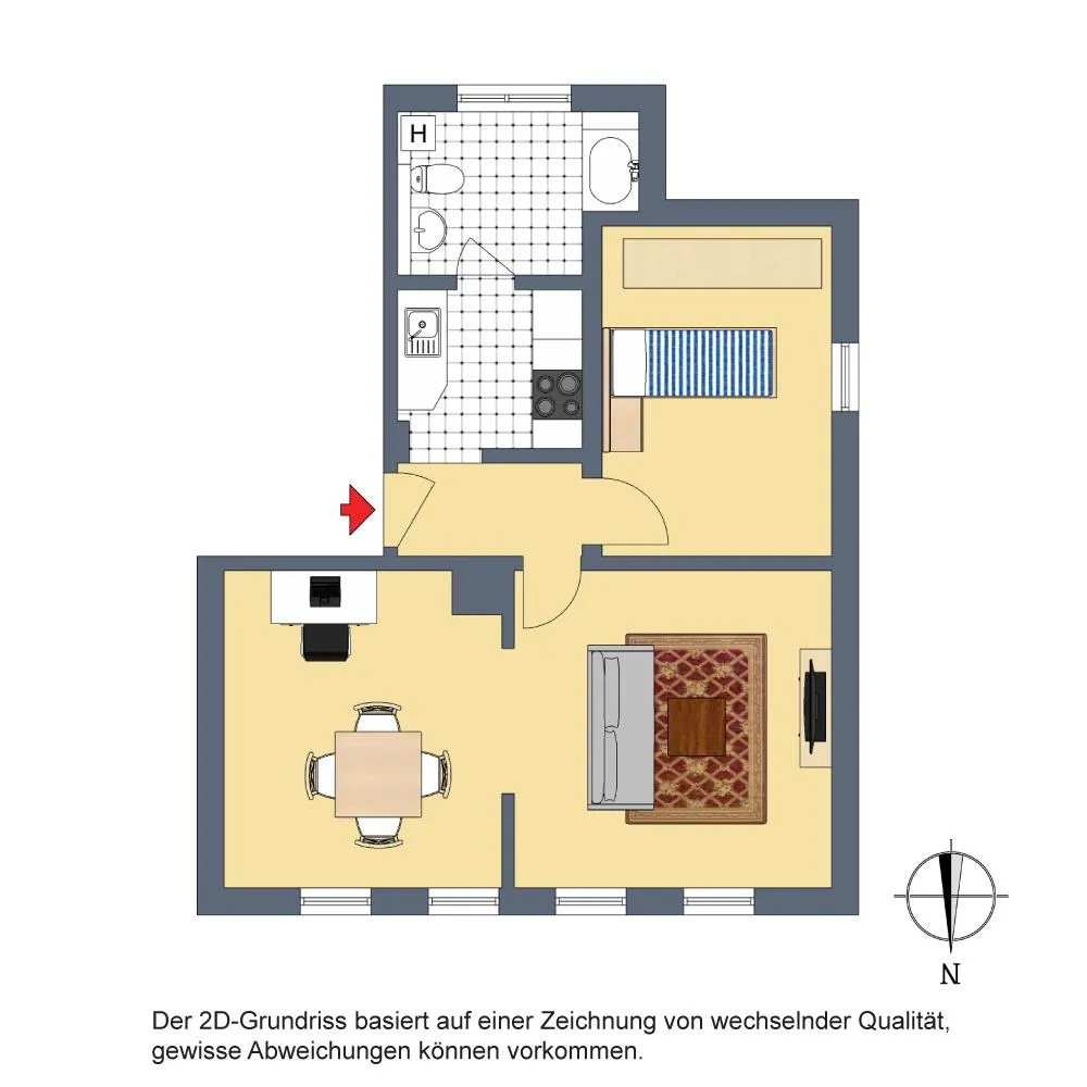 Diese gemütliche und modernisierte 2 1/2-Zimmer-Etagen-Wohnung, an einen absoluten Nichtraucher (da ohne Balkon), befindet sich im 1. Obergeschoss eines freistehenden 2-Familienhauses.