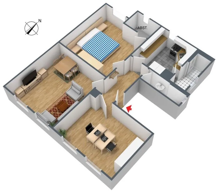 Die Zimmer und der Flur sind mit PVC-Böden in Holzoptik ausgestattet.