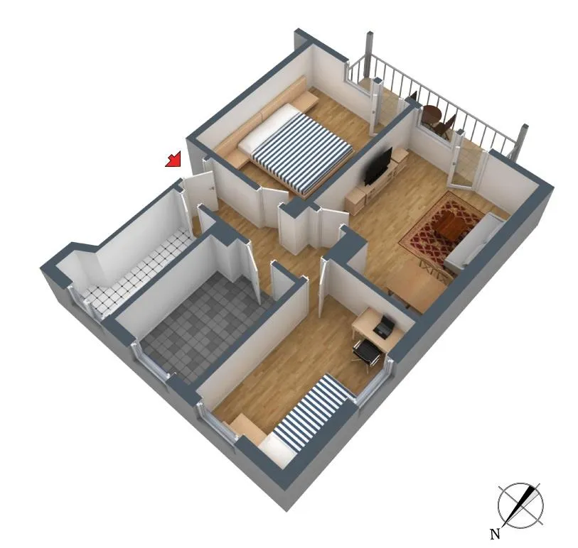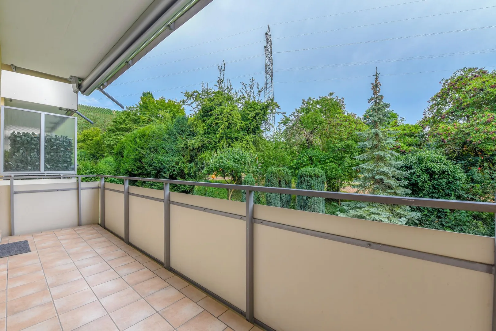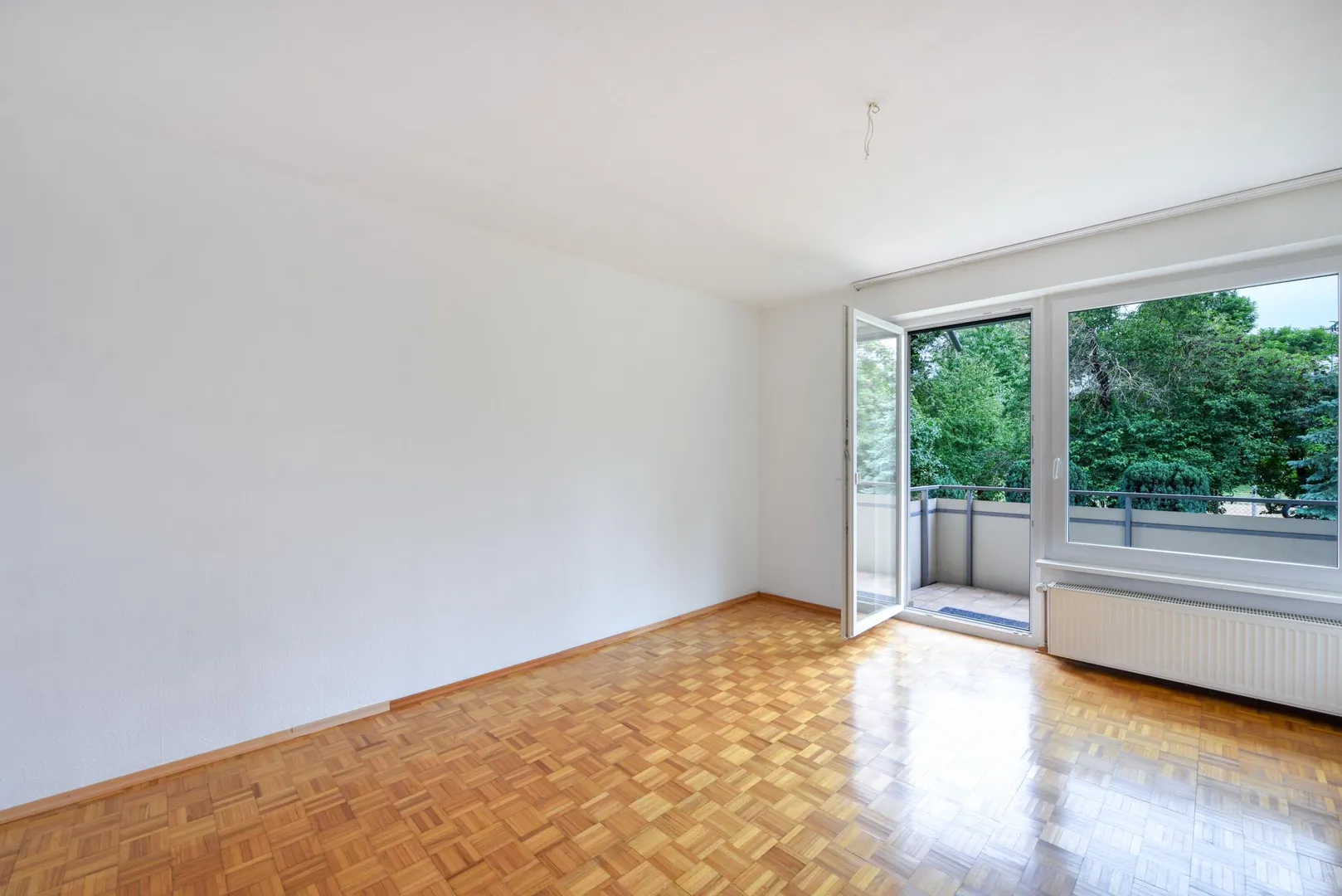Das Wohnzimmer, das Schlafzimmer sowie der Balkon sind nach Süden ausgerichtet.
