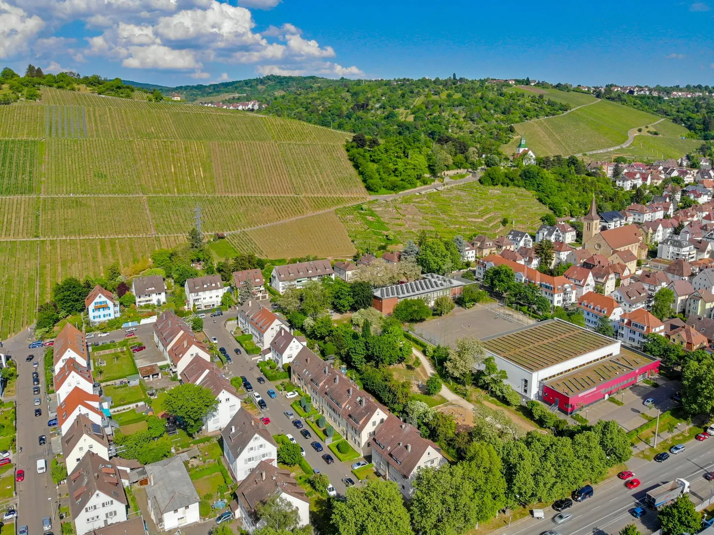 Die Wohnung befindet sich zwischen dem Gewerbegebiet "Augsburger Straße" und den Weinbergen.