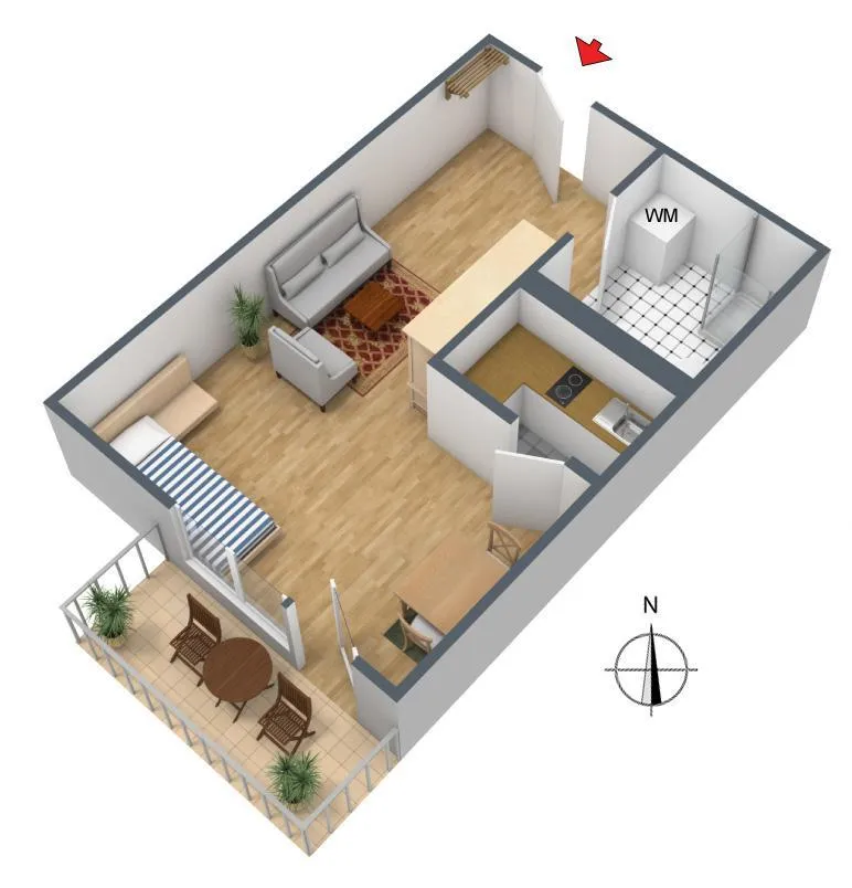 Diese bequeme und solide vermietete 1-Zimmer-Wohnung befindet sich im 2. Obergeschoss.