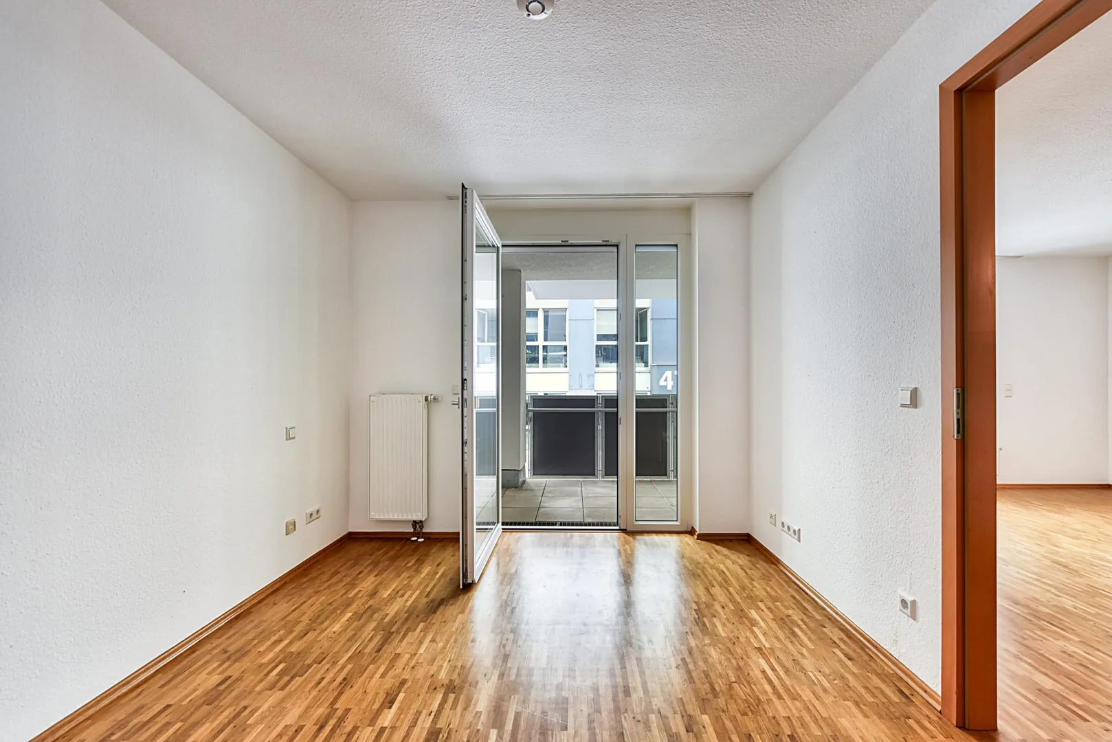 Der Grundriss ist offen gestaltet: die Küche ist zum großzügigen Wohnbereich hin offen. Das Schlafzimmer ist über das Wohnzimmer begehbar. Der Balkon ist sowohl vom Wohnzimmer als auch vom Schlafzimmer begehbar.