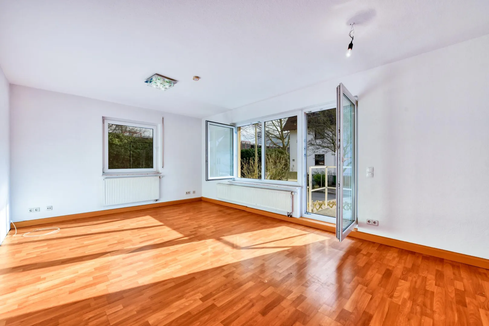 Diese gemütliche 3-Zimmer-Etagen-Wohnung mit Terrasse und Grünfläche befindet sich im Hochparterre eines 2-Familienhauses. Beide Parteien verfügen über den hälftigen Anteil.