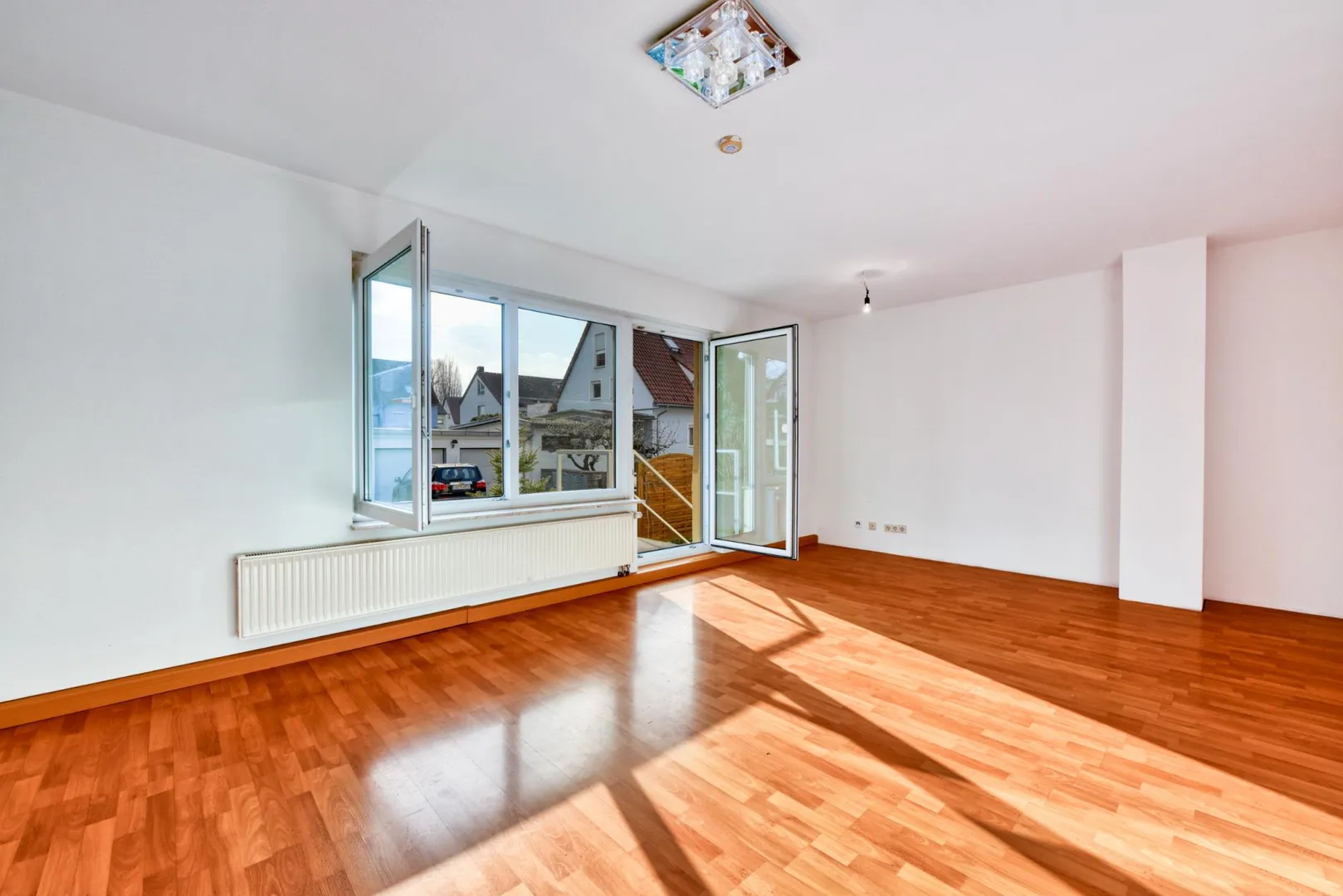 Neben dem Haus befindet sich eine Doppel-Garage. Der Kfz-Stellplatz auf der rechten Seite in der Garage gehört zu der Wohnung.