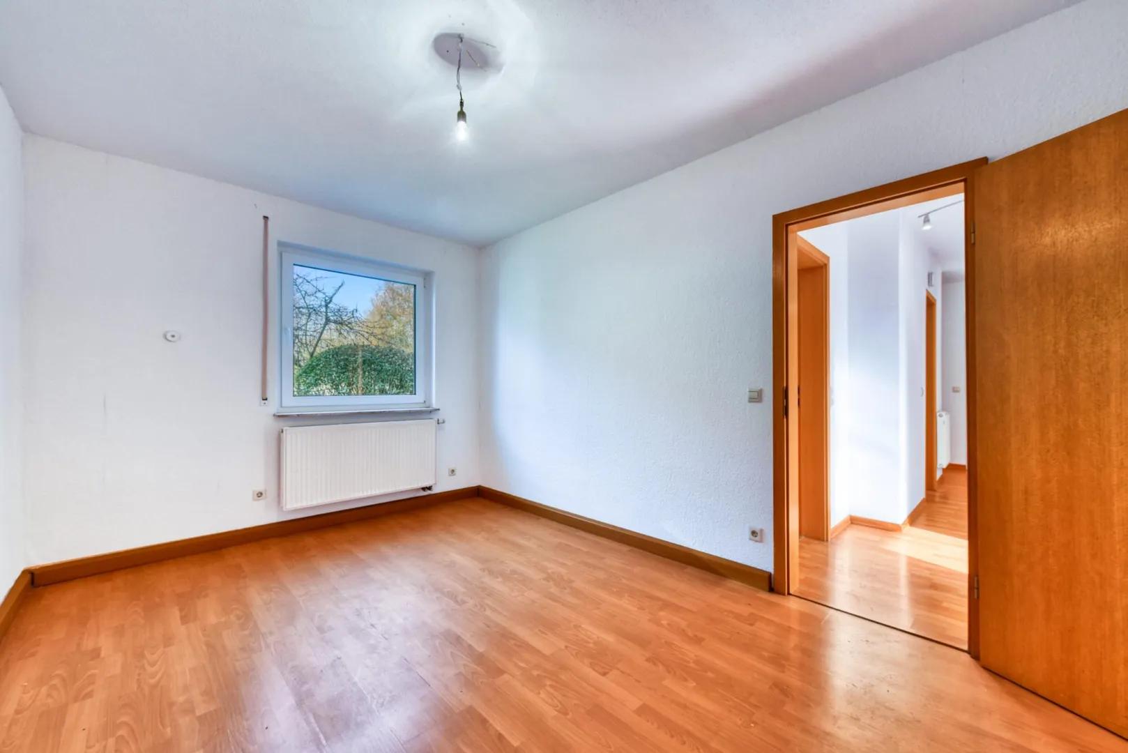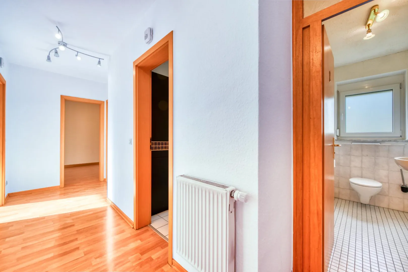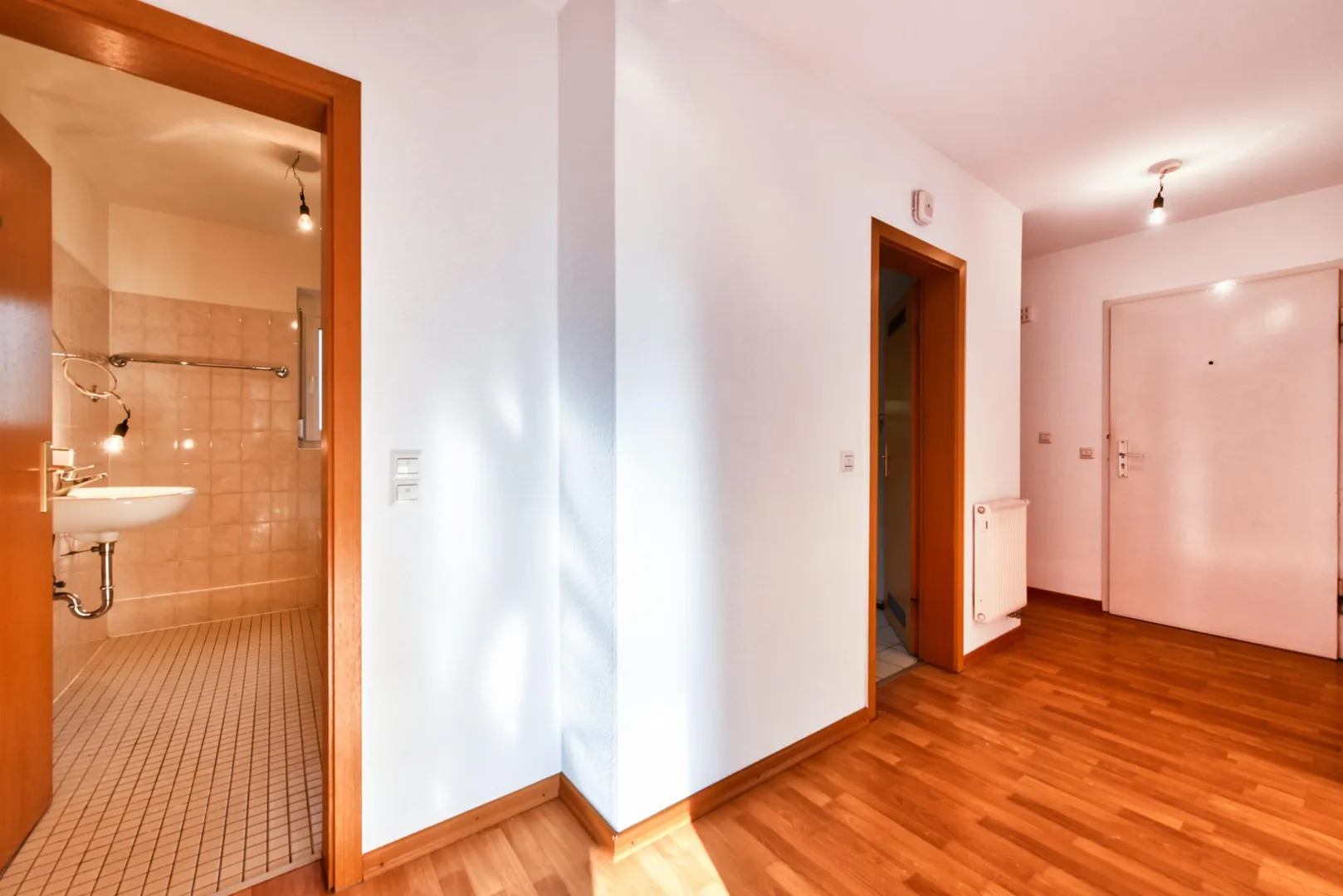 Im Flur sowie in den Zimmer sind Laminatböden verlegt. Die Böden in der Küche sowie im WC sind gefliest.