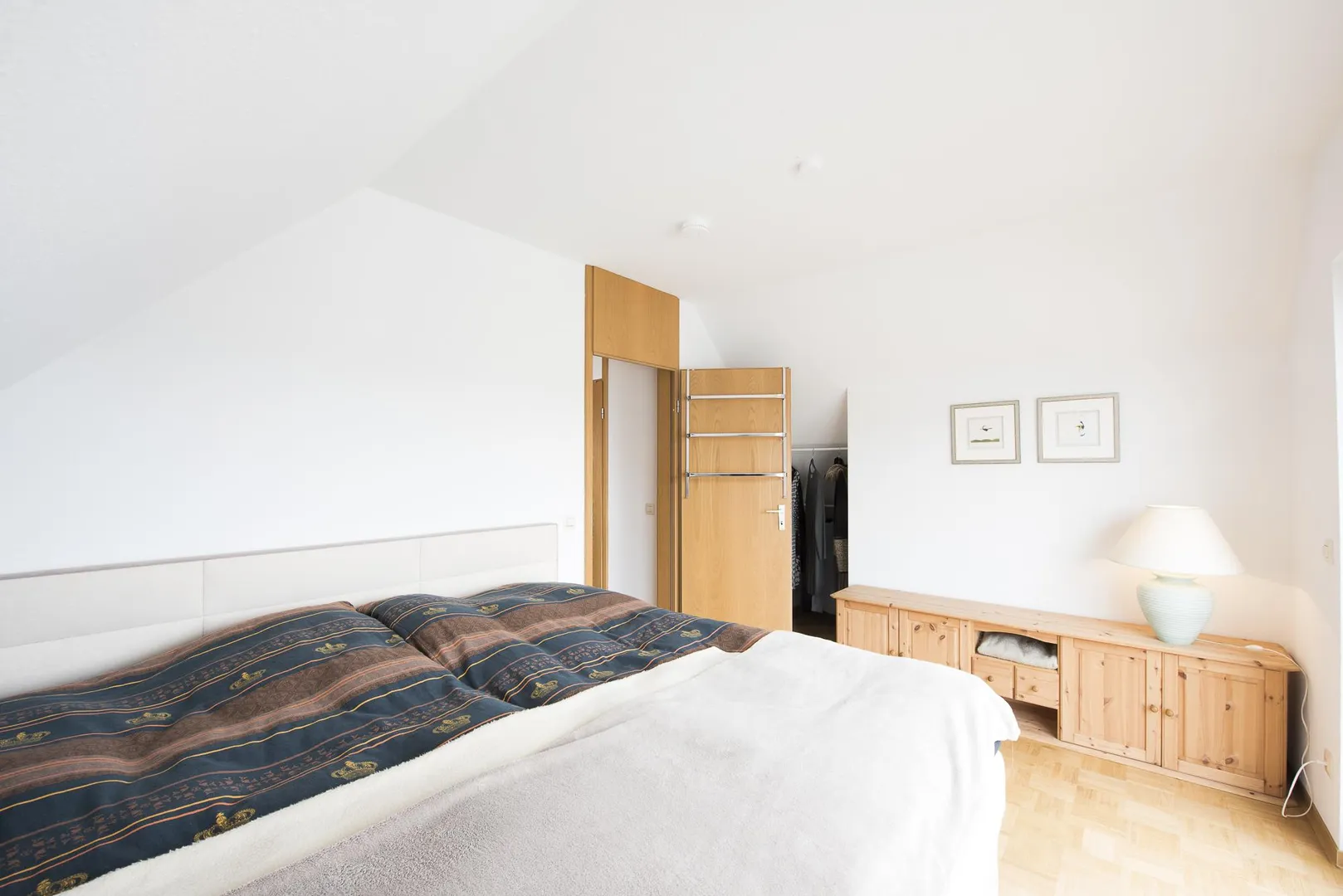 Im Flur und in den Zimmern ist Massivholz-Parkett verlegt.