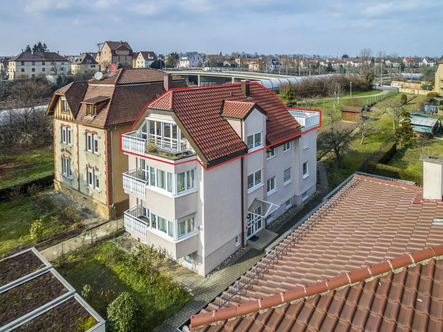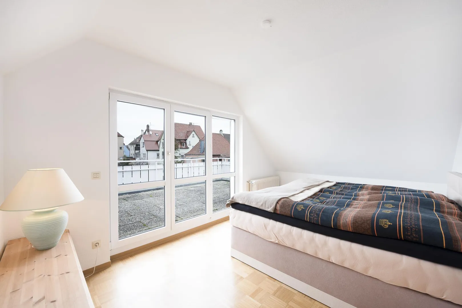 Diese helle & sonnige 2-Zimmer-Dachgeschoss-Etage befindet sich im 2. Obergeschoss eines freistehenden 4-Familienhauses.