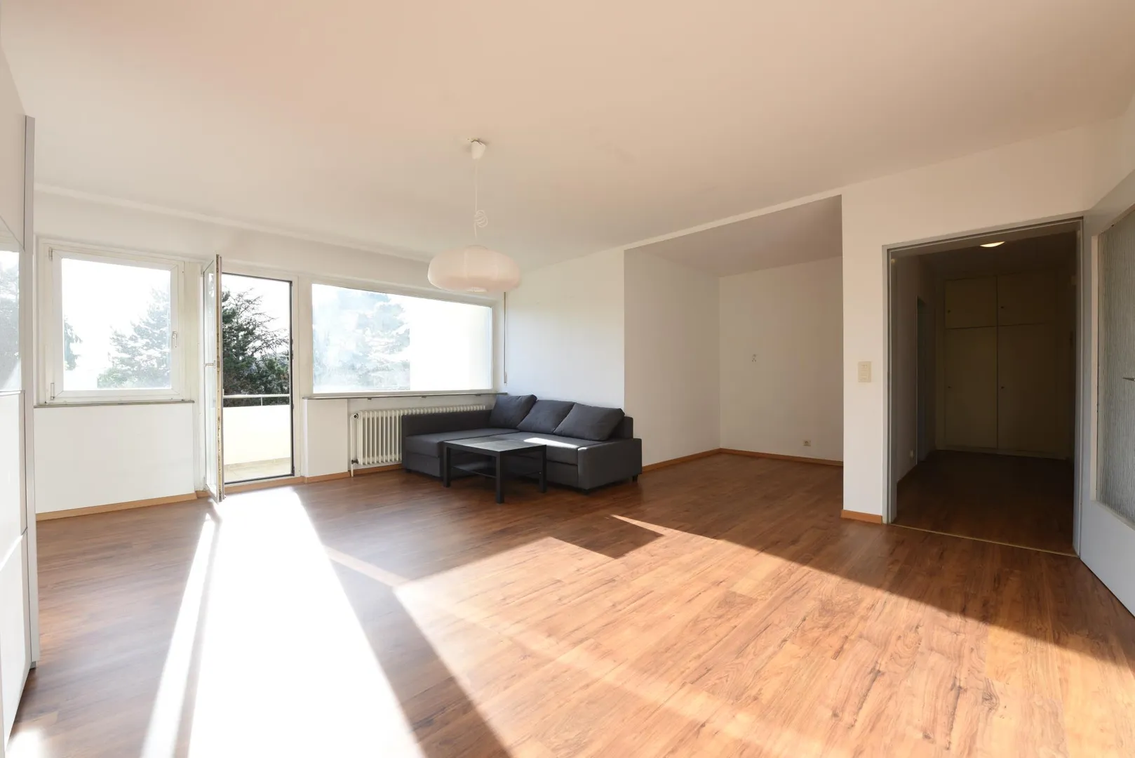 Das Wohnzimmer und der ca. 7 m² große West-Balkon sind nach Westen ausgerichtet.