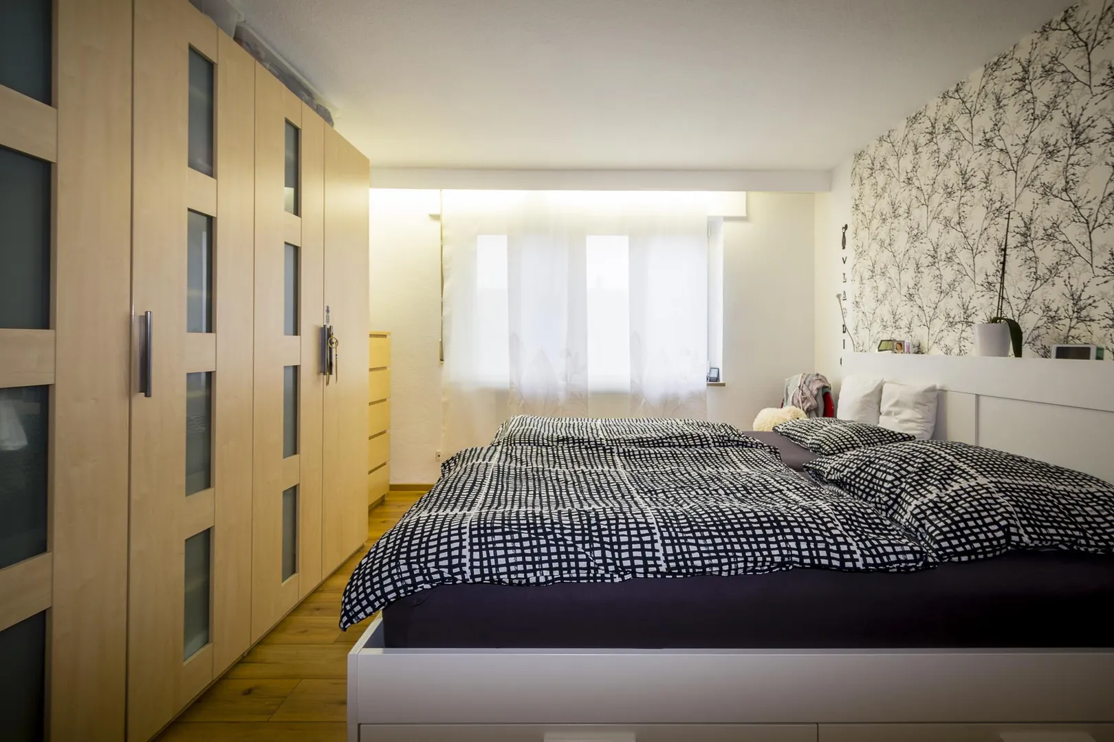 Die Wände sind tapeziert und befinden sich in einem gepflegten Zustand.