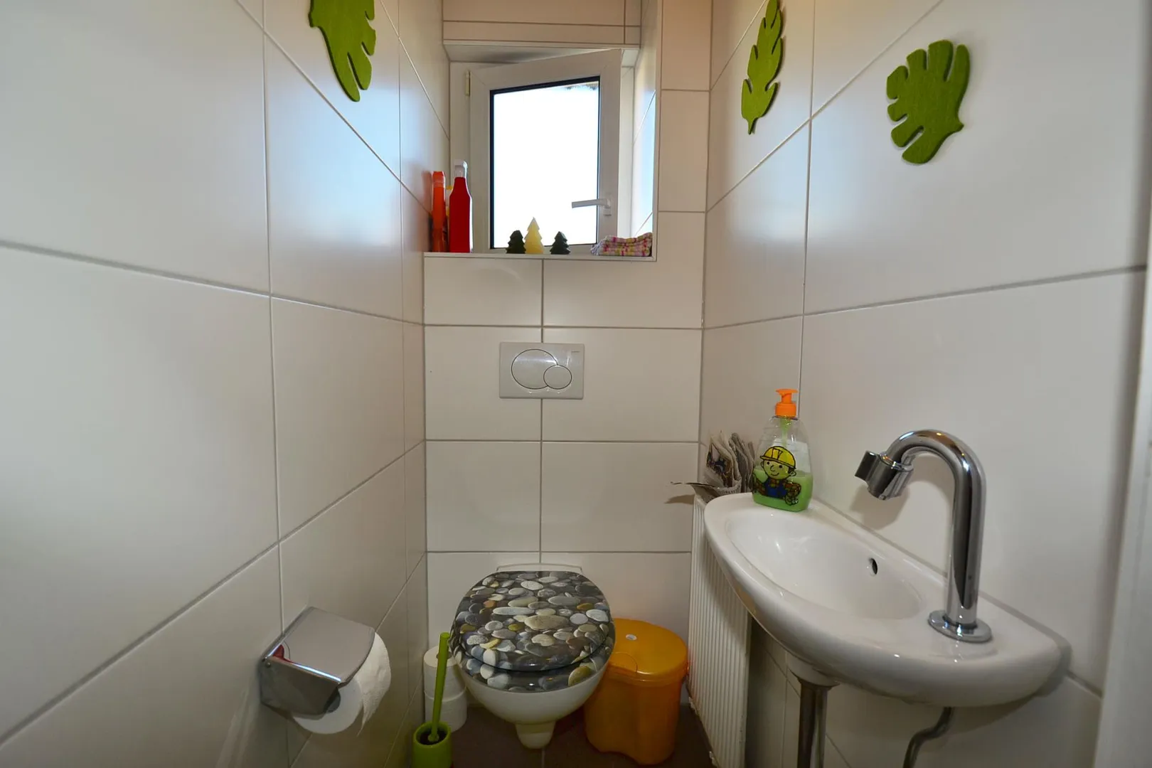 Der Grundriss ist gut: Alle Räume sind vom Flur aus erreichbar. Das Badezimmer ist mit einem Fenster ausgestattet. Das raumhoch geflieste WC mit Fenster ist separat.