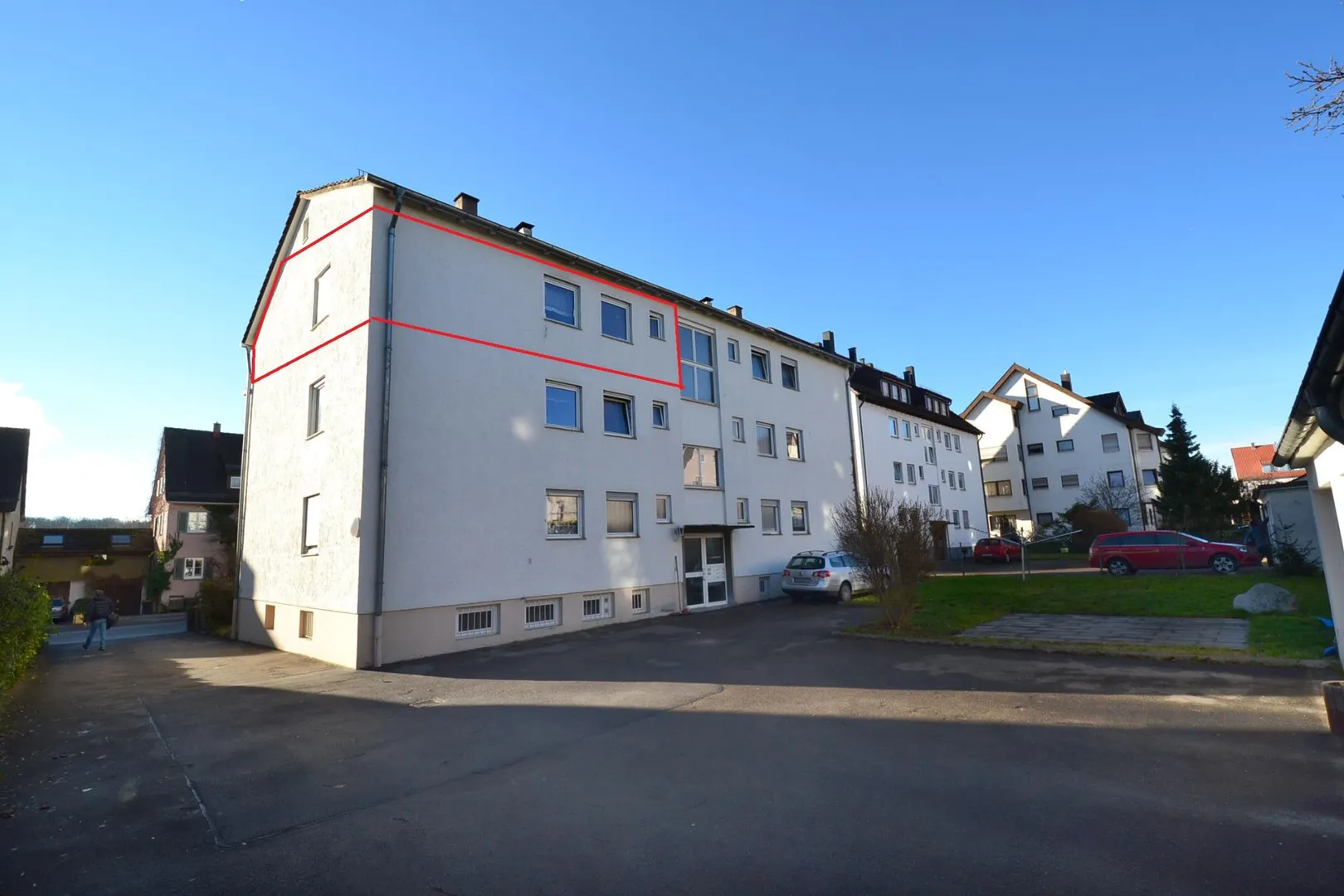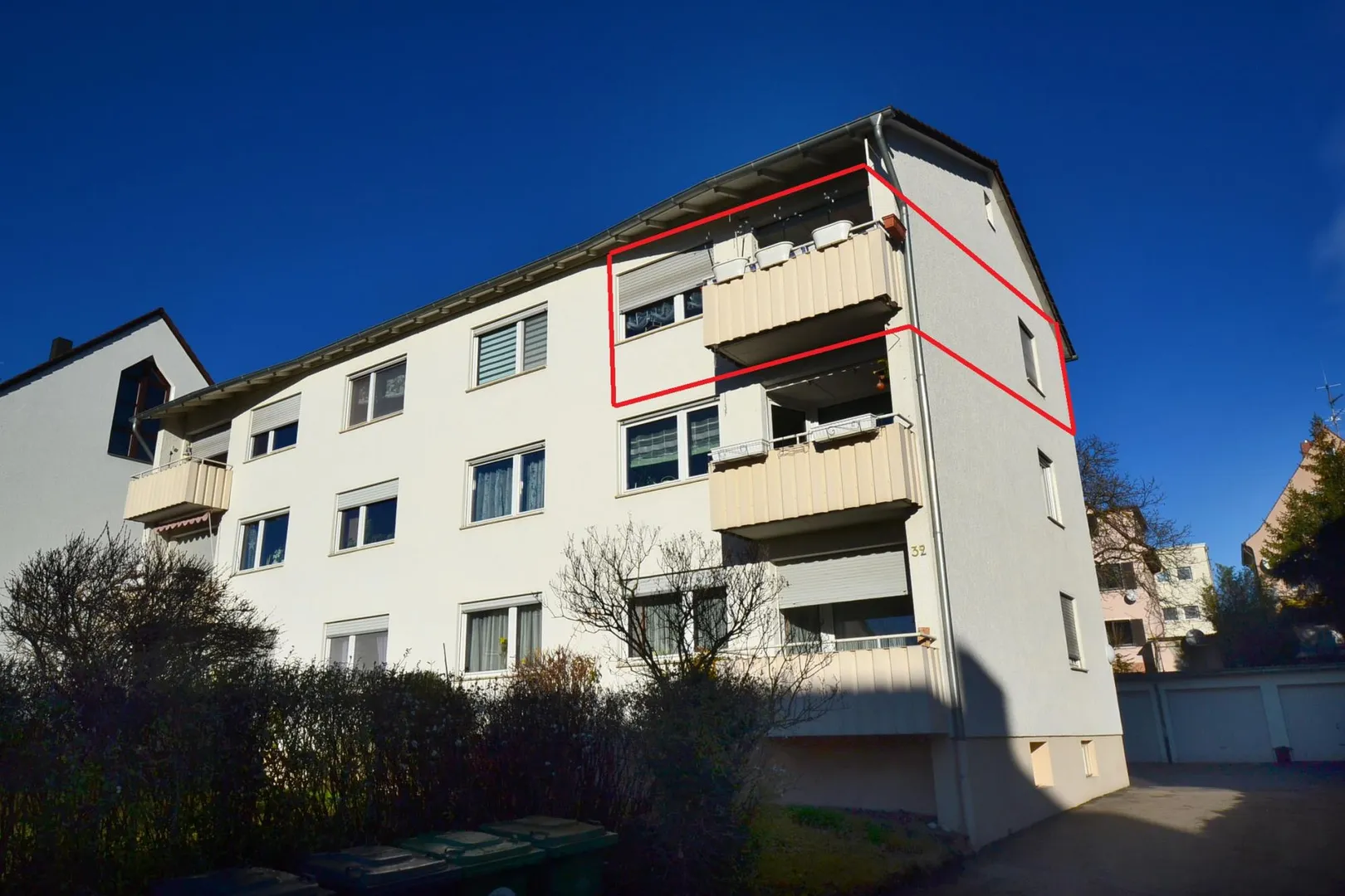 Diese helle & sonnige 3-Zimmer-Wohnung befindet sich im 2. Obergeschoss (Dachgeschoss ohne Schrägen) eines freistehenden 6-Familienhauses.