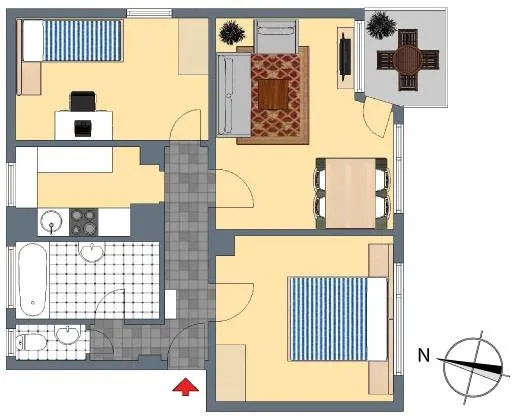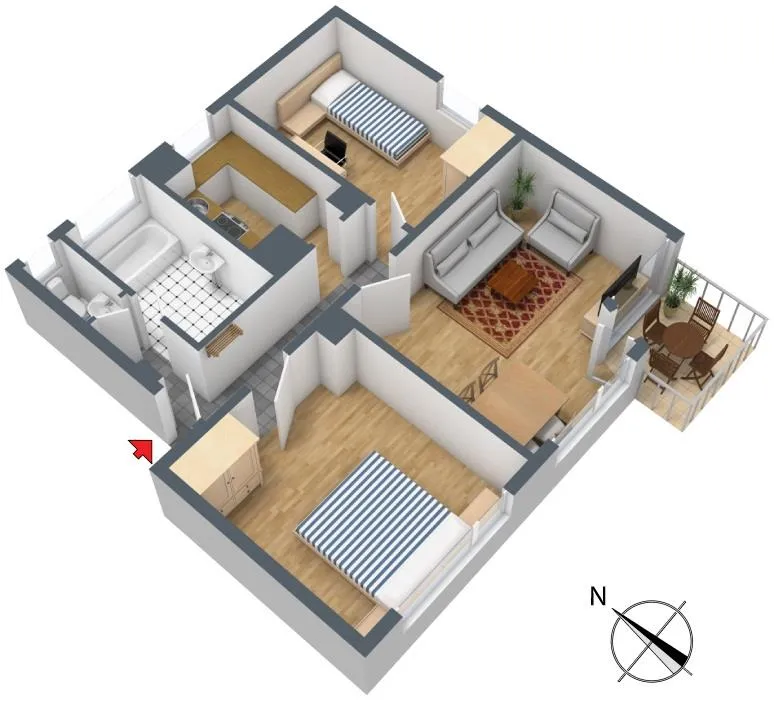 Das Wohn- und das Schlafzimmer sind hell und nach Süden ausgerichtet, das Kinderzimmer ist nach Osten ausgerichtet.