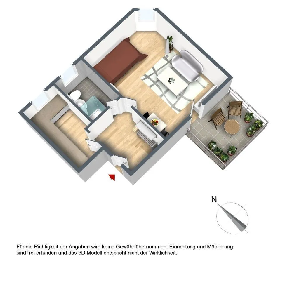 Trotz sorgfältiger Prüfung der im Exposé gemachten Angaben, können wir für die Richtigkeit und Vollständigkeit der Angaben keine Haftung übernehmen. Bitte beachten Sie, dass die Immobilie auf den Bildern größer wirkt als sie in der Realität ist.
