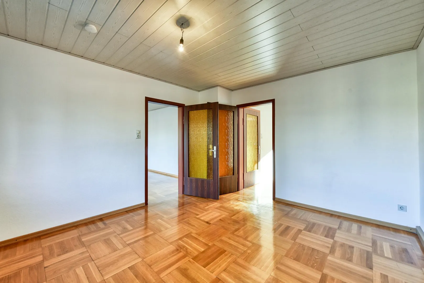 In den Zimmern ist Parkett verlegt. Im Flur sind Solnhofer-Platten verlegt. Die Böden im Badezimmer sowie im separaten WC sind gefliest. In der Küche ist PVC-Boden verlegt.