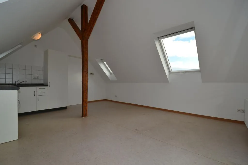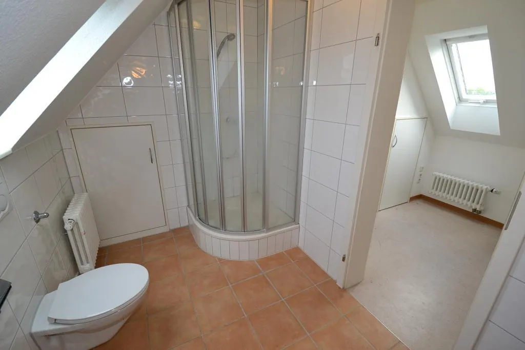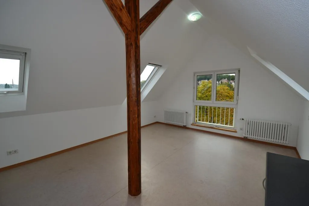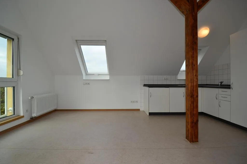 Diese neuwertige und frisch renovierte 1-Zimmer-Dachgeschoss-Pendler-Wohnung befindet sich im 4. Obergeschoss ohne Aufzug eines Mehrfamilienhauses.