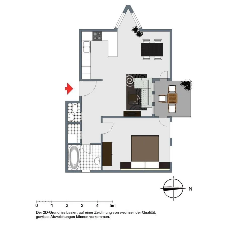 Der ca. 4,6 m² große Nord-Balkon ist überdacht und ist vom Wohnbereich und vom Schlafzimmer begehbar.
