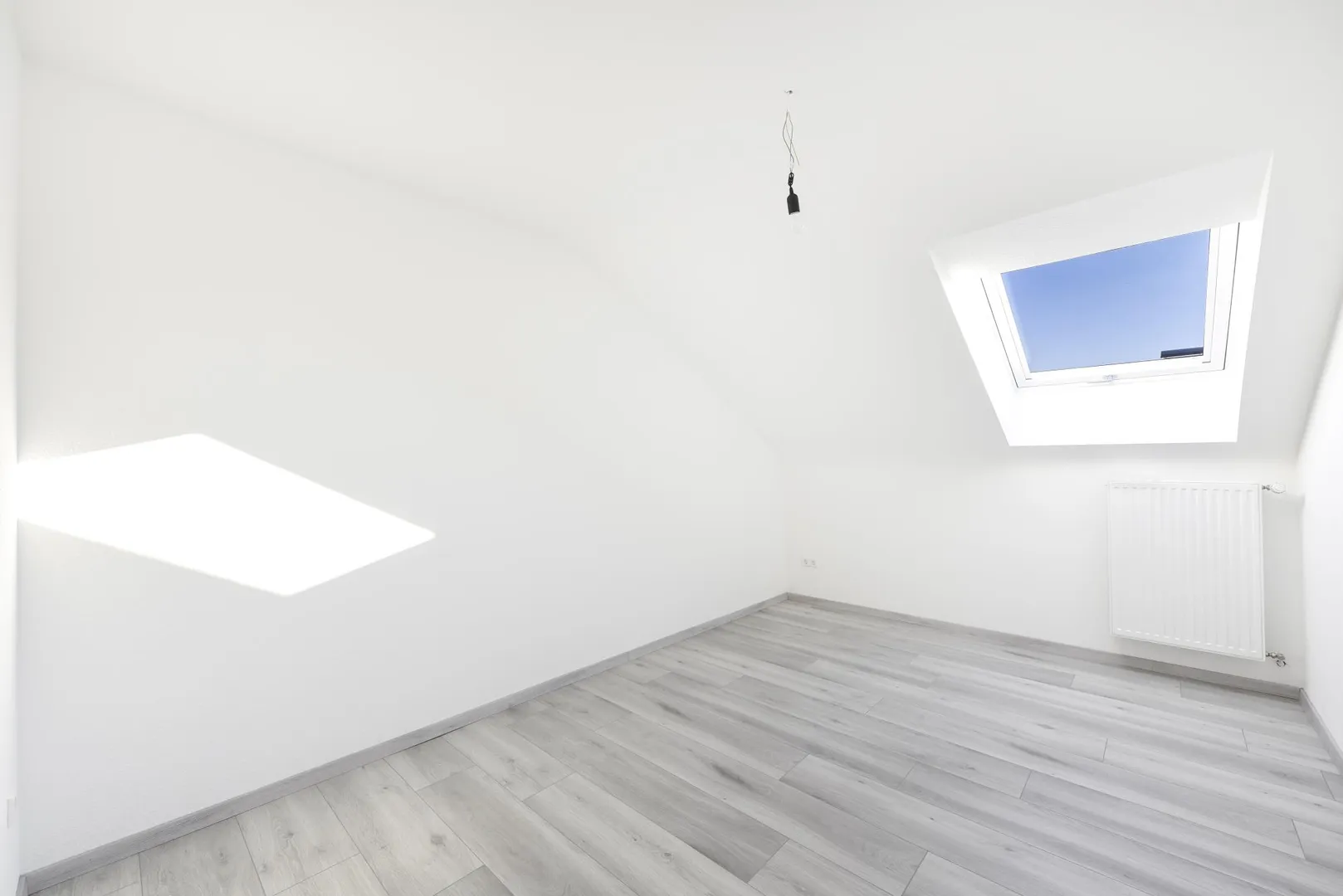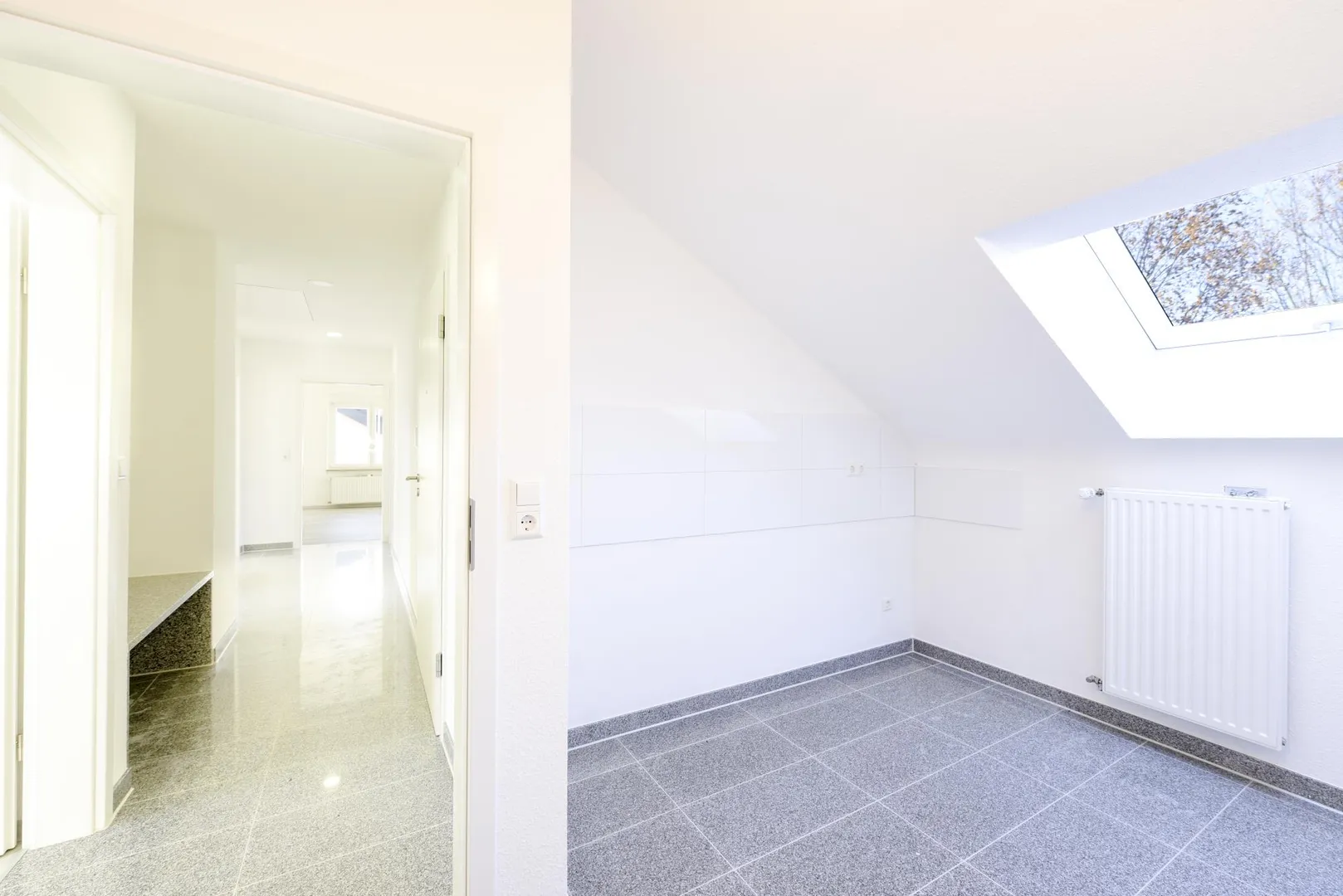 Diese frisch modernisierte 4-Zimmer-Dachgeschoss-Etagen-Wohnung befindet sich im 2. Obergeschoss einer 6 Familien-Doppelhaushälfte.
