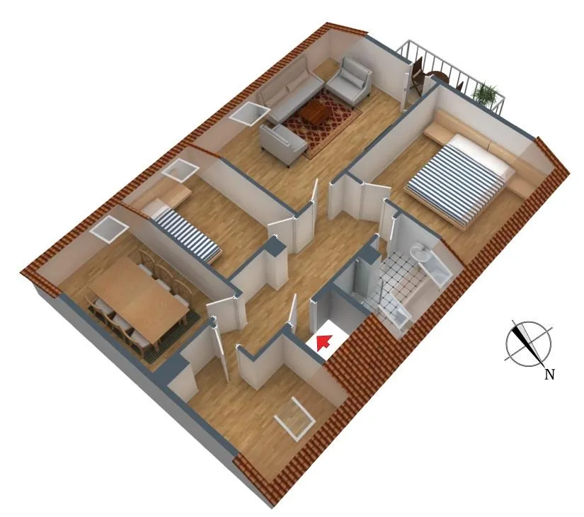 Diese frisch modernisierte 4-Zimmer-Dachgeschoss-Etagen-Wohnung befindet sich im 2. Obergeschoss.