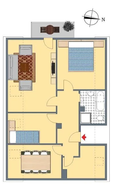 Die Zimmer sind mit Laminatböden ausgestattet. Die Böden im Flur, im Bad und in der Küche sind mit Granitfliesen ausgestattet.