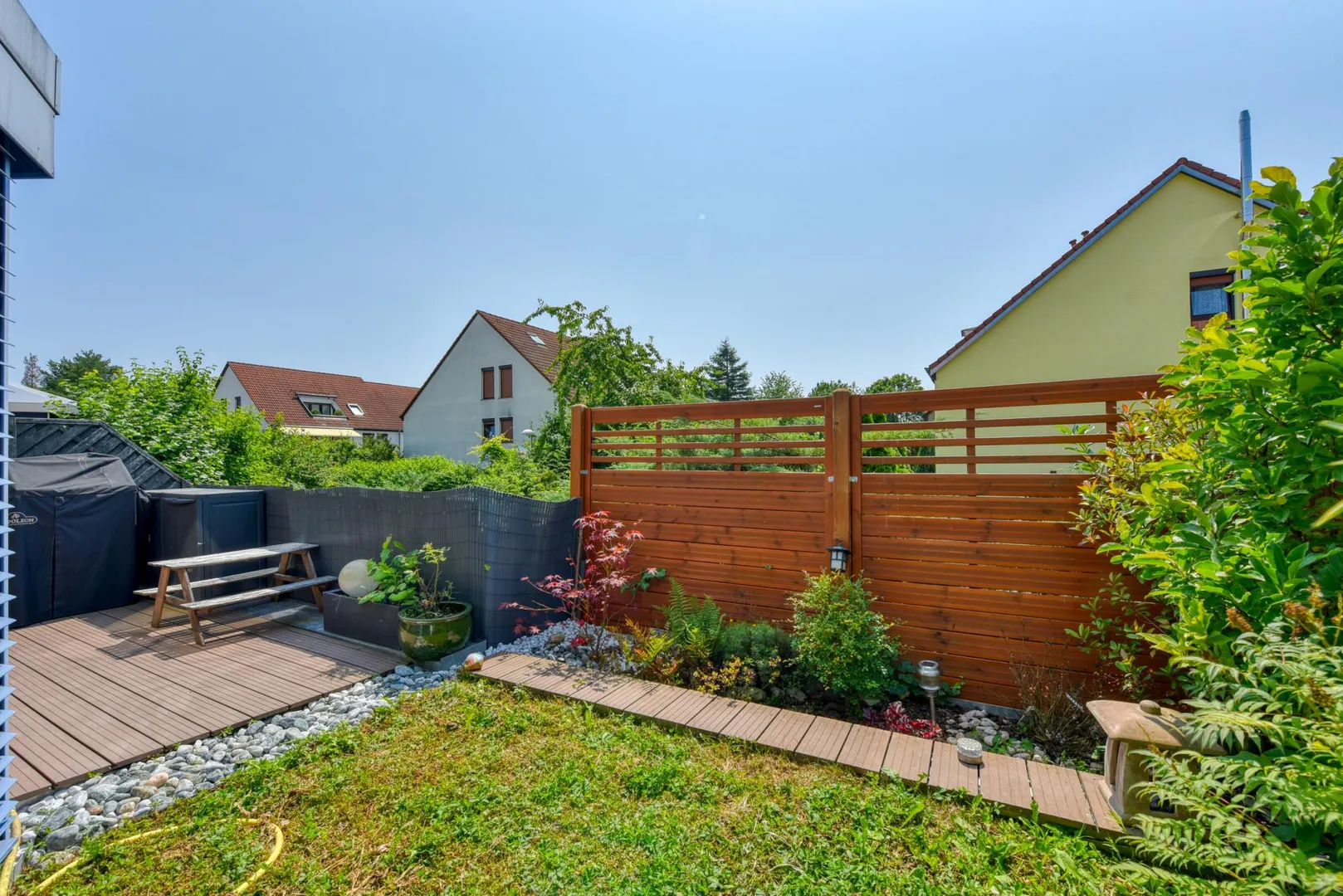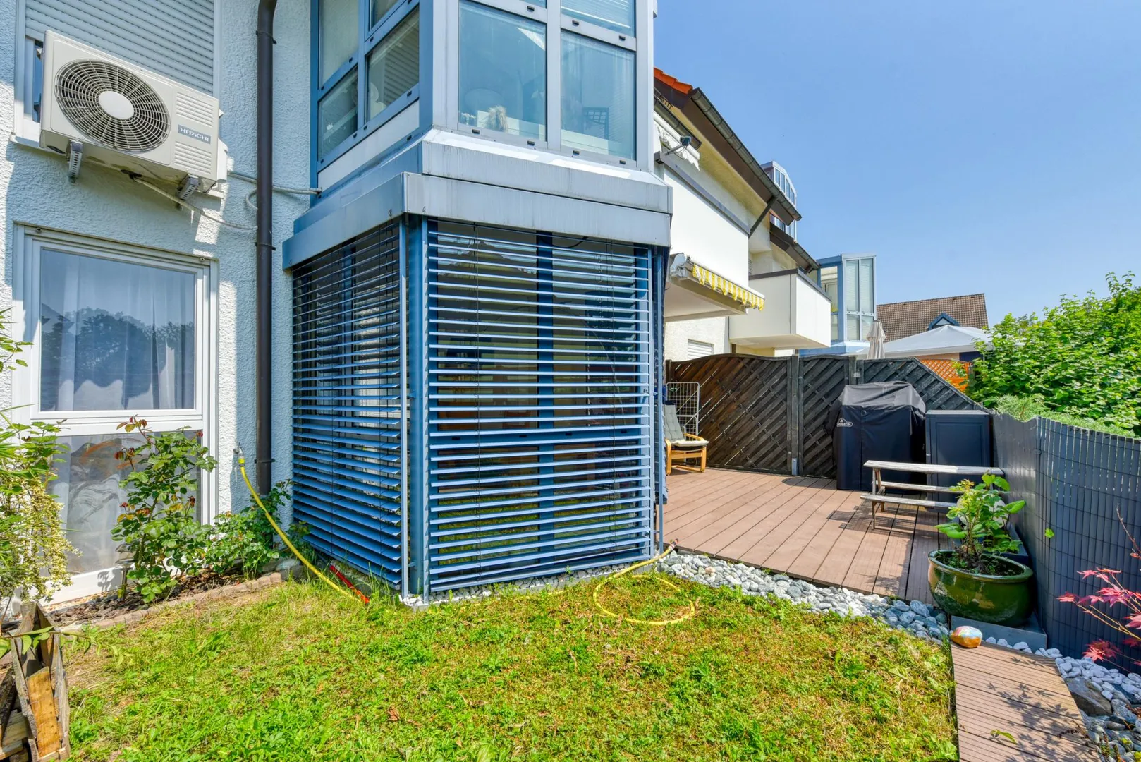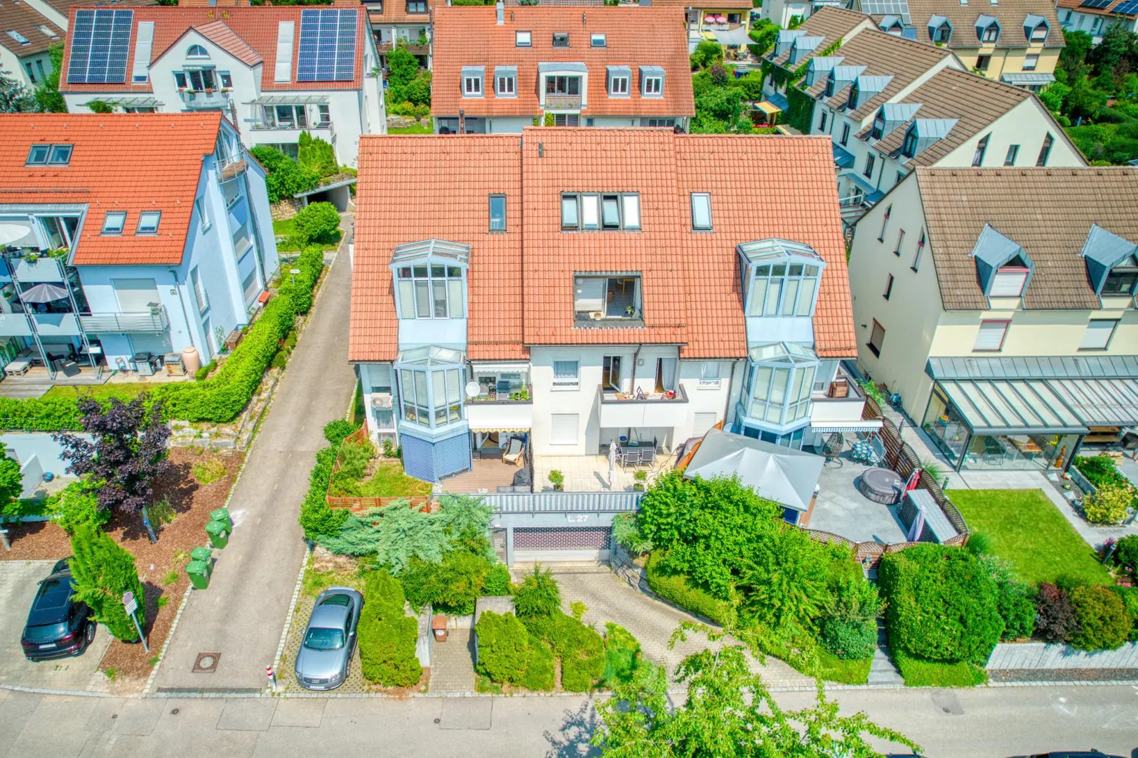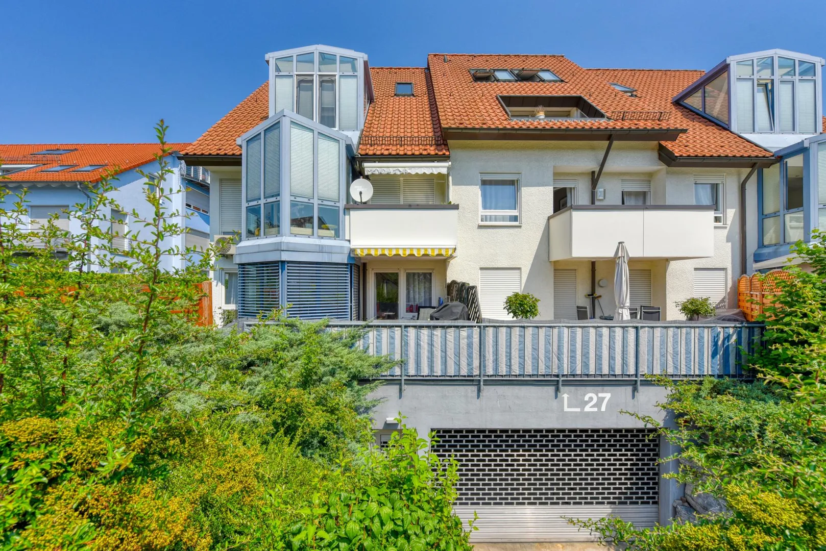 Die teilüberdachte Terrasse ist ca. 14 m² groß und ist mit einer elektrischen Markise ausgestattet.