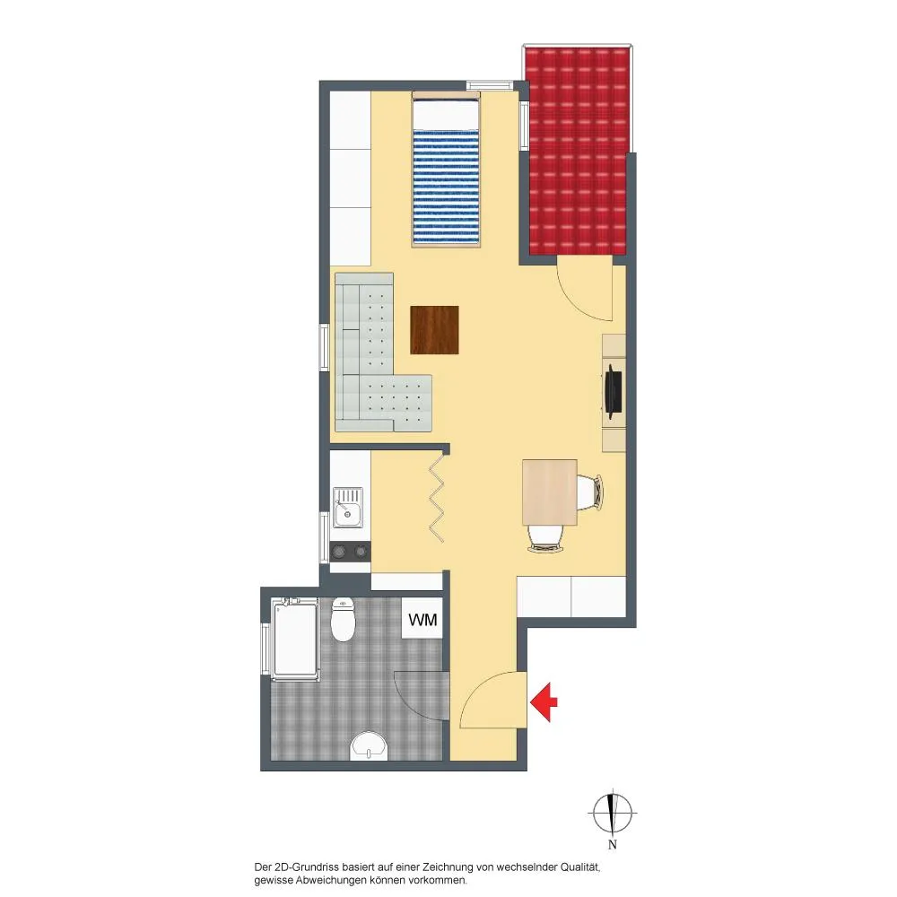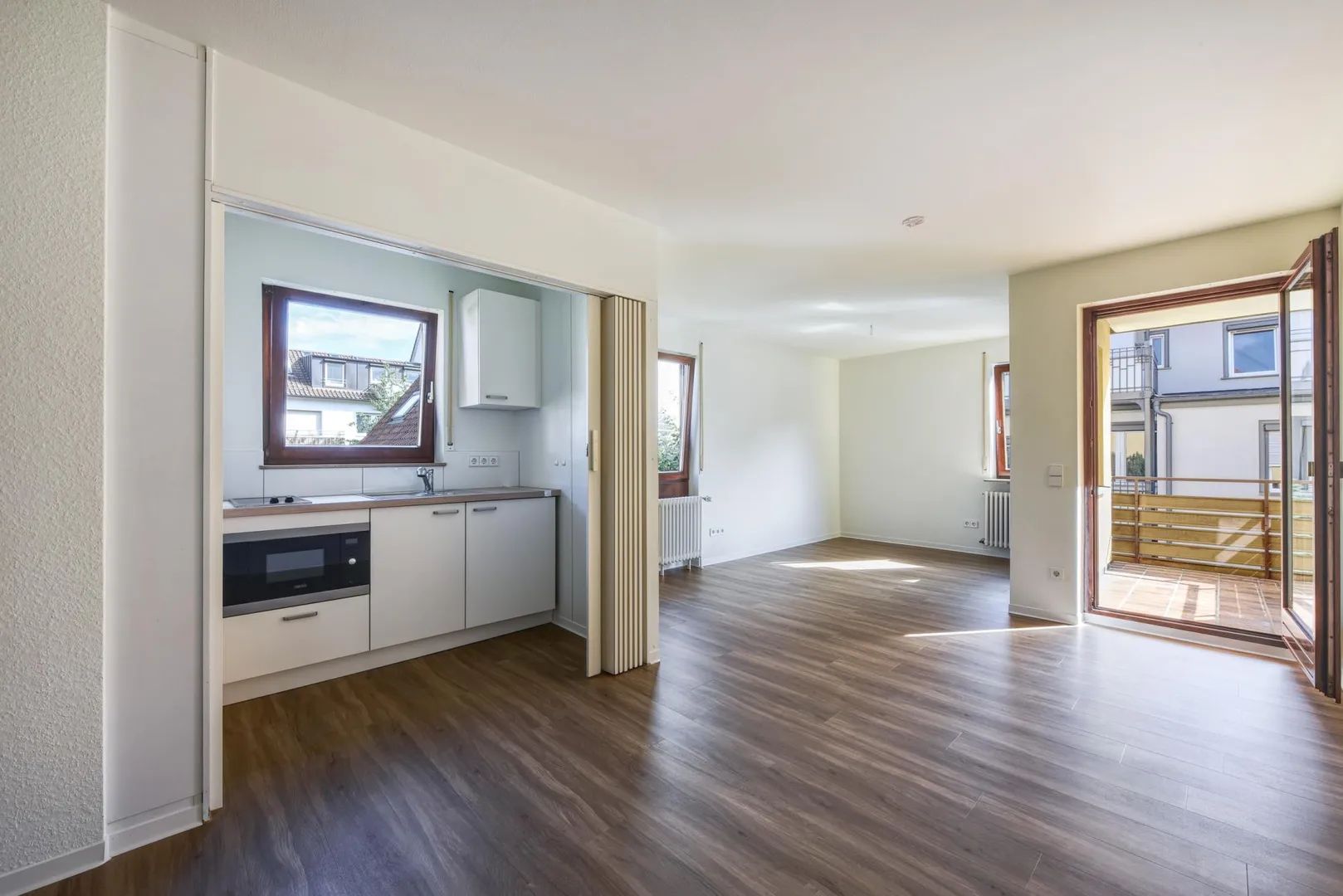 Der Grundriss ist gut: das Badezimmer verfügt über ein Fenster. Der ca. 3,5 m² große und überdachte Süd-Balkon ist über das Wohnzimmer begehbar.
