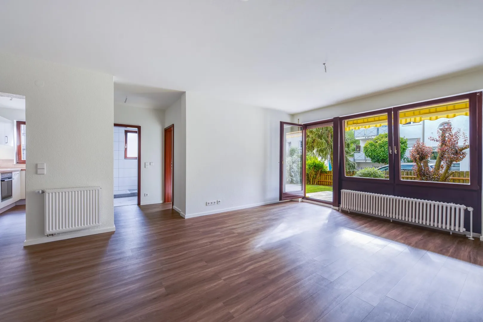 Diese frisch und hochwertig modernisierte 2-Zimmer-Wohnung, an eine Einzelperson, mit Terrasse und Grünfläche befindet sich im Erdgeschoss.