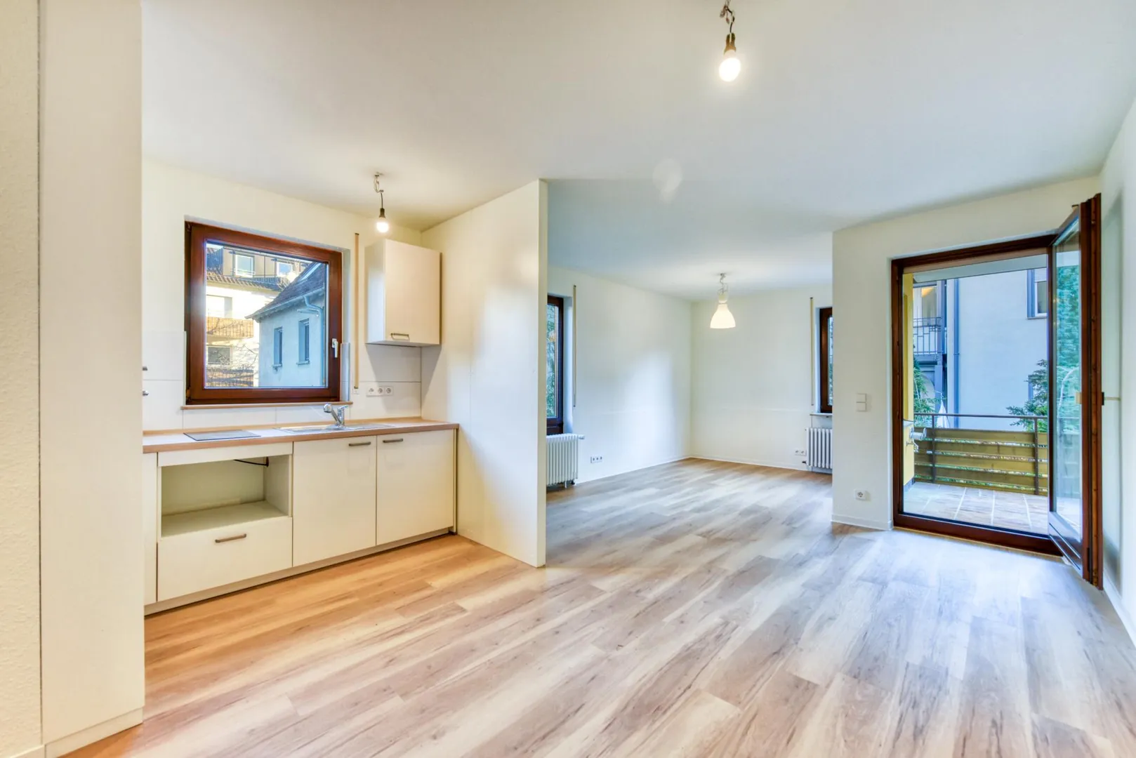 In der Wohnung sind neue Design-Vinyl-Böden verlegt.
