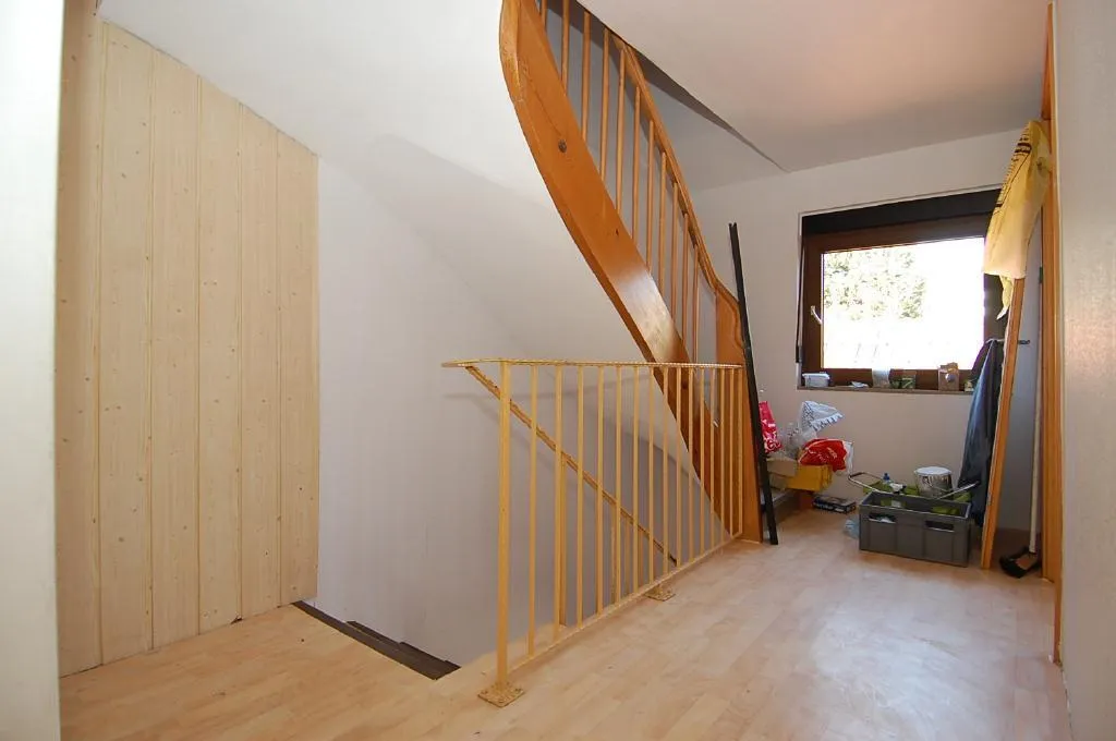 Die Etagen sind durch einen Treppenaufgang verbunden. Der momentane Aufgang zum Dachgeschoss 2 ist sehr eng und bedarf einer Veränderung.