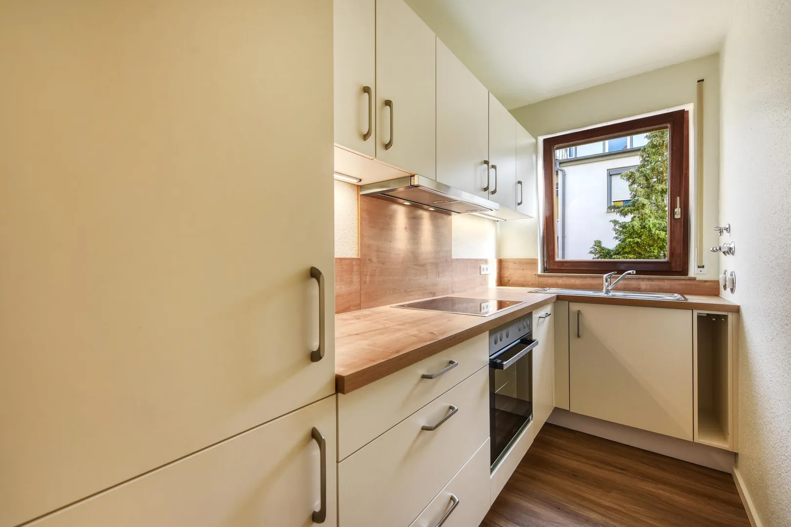 Die Einbauküche wurde letztes Jahr neu eingebaut und verfügt über einen Kühlschrank, einen Gefrierschrank, eine Spülmaschine, einen Herd, einen Backofen, einen Dunstabzug sowie Unter- und Oberschränke. Für die künftige Funktionsfähigkeit der E-Geräte übernimmt der Vermieter keine Haftung.