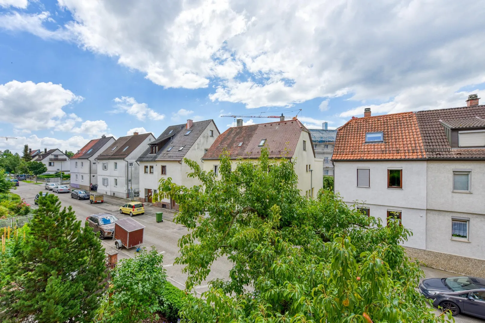 Das Wohn- sowie das Arbeits-/Kinderzimmer sind zur Straße, nach Süden ausgerichtet. Das Badezimmer, das WC sowie das Schlafzimmer sind zum Garten, nach Norden ausgerichtet.