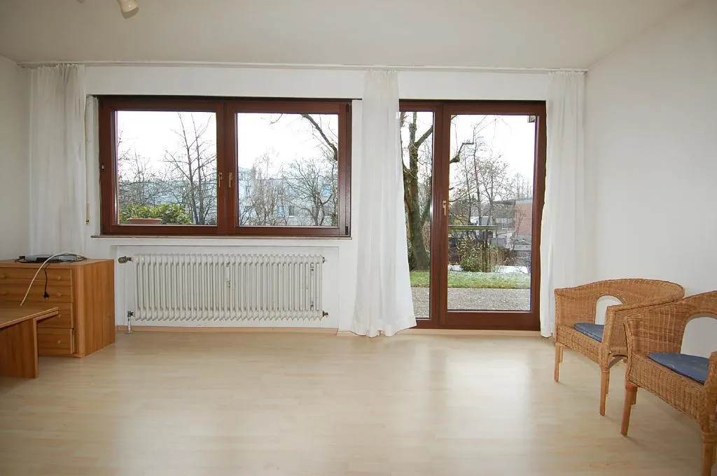 Diese möblierte 1-Zimmer Wohnung mit Süd-West-Terrasse befindet sich im Untergeschoss (Souterrain) einer gepflegten 3-Familien-Doppelhaushälfte.