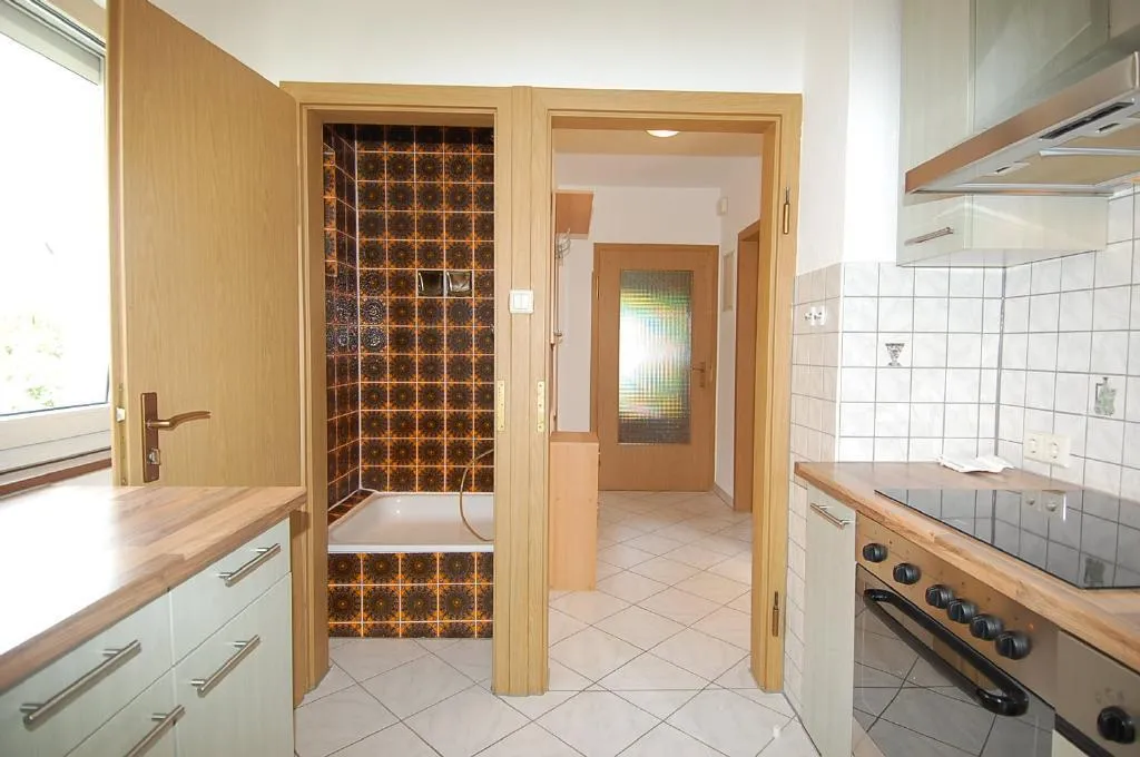Die Wohnung verfügt über kein Badezimmer, sondern über einen "Duschraum" mit Fenster neben der Küche. Das WC mit Fenster ist separat.